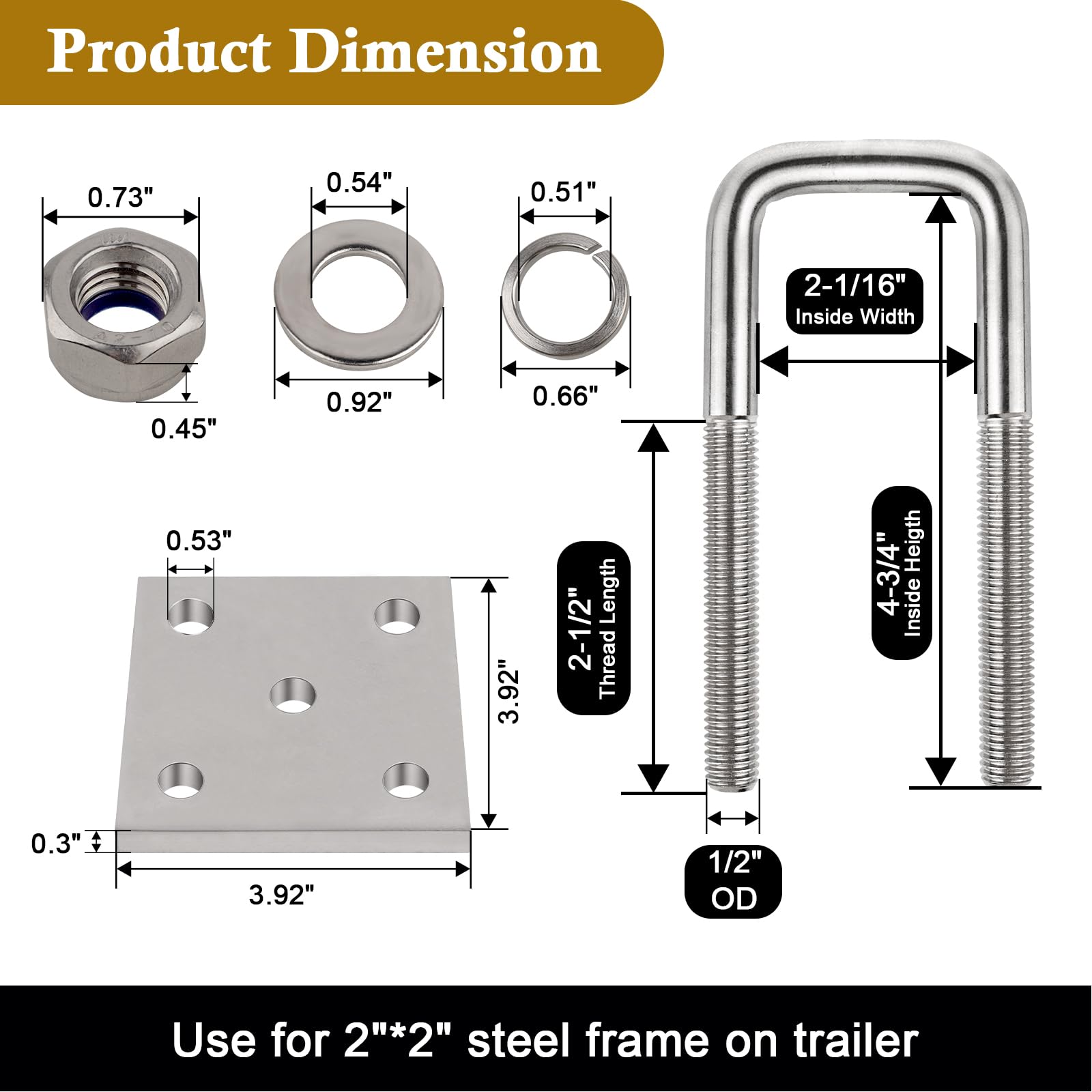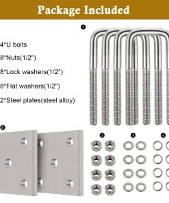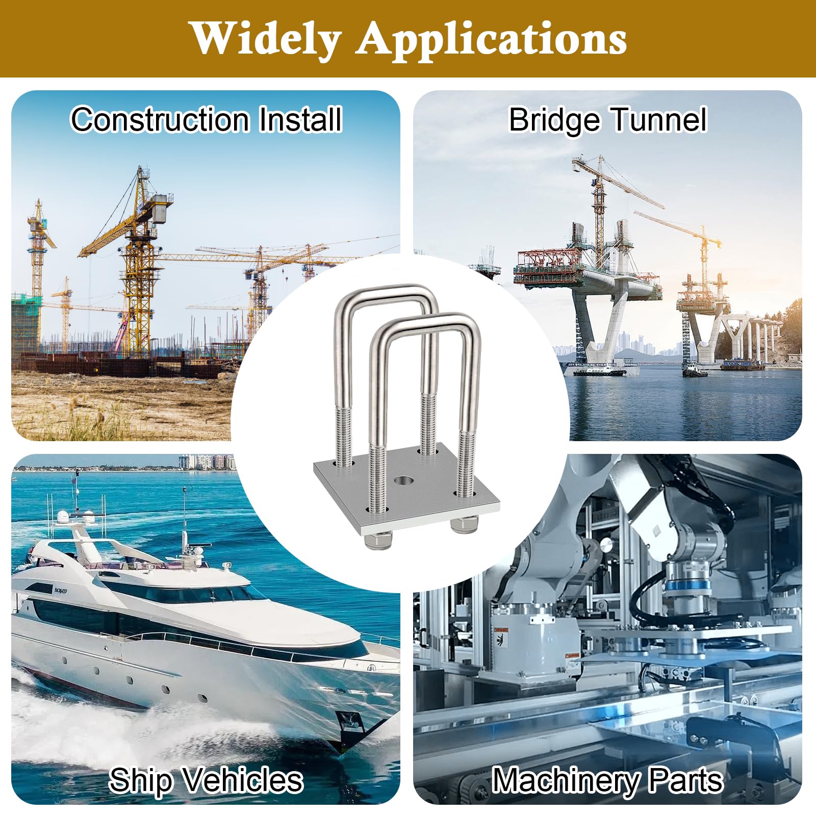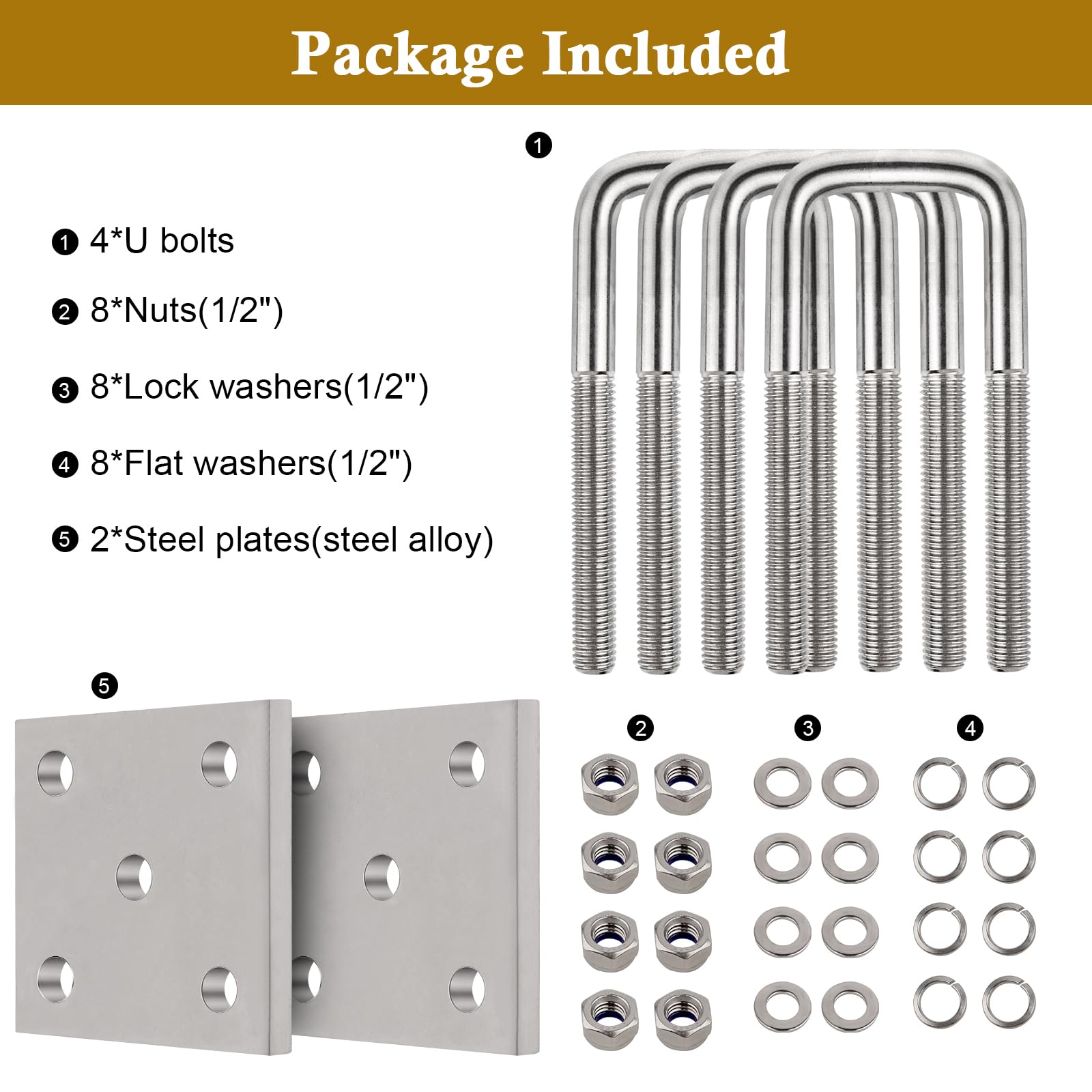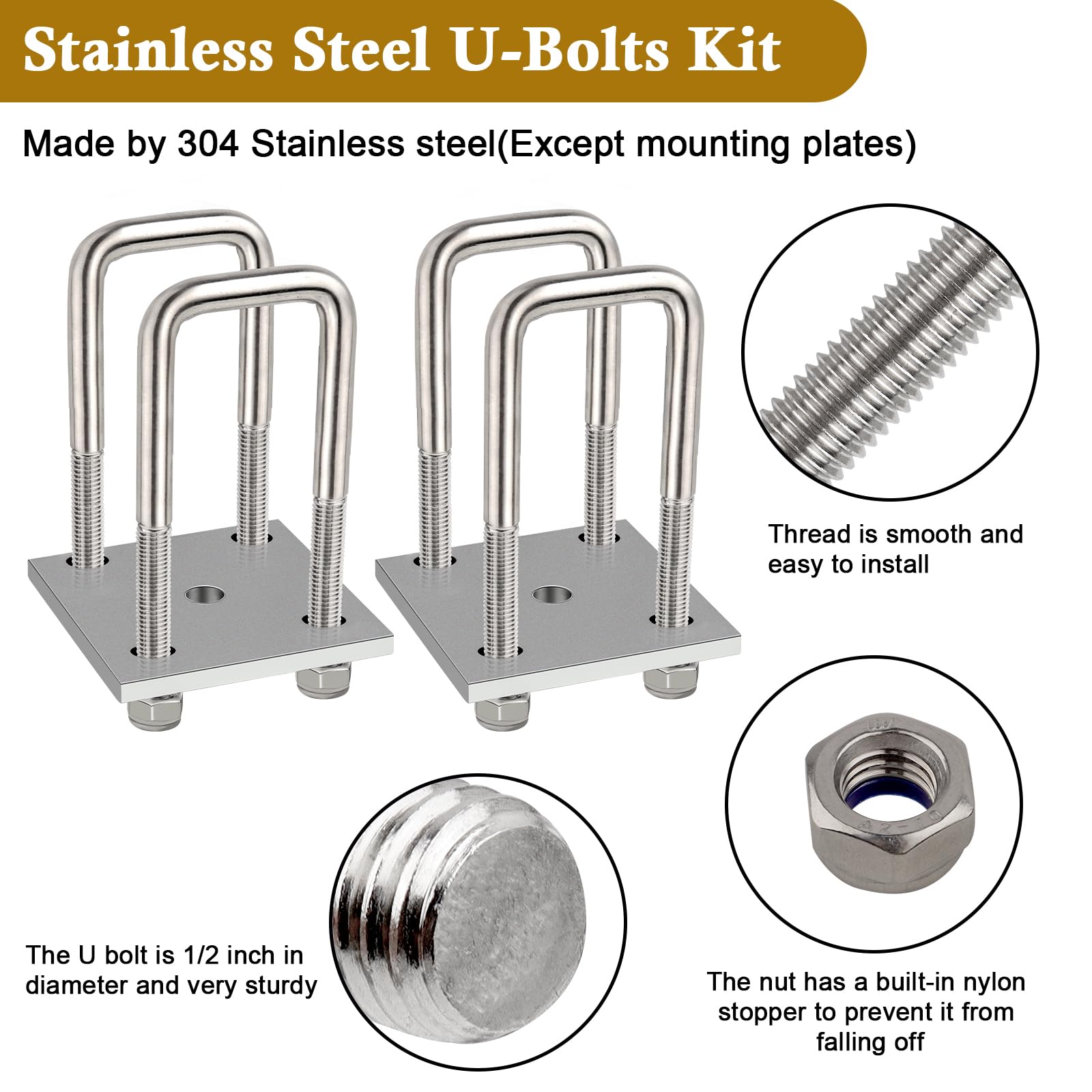 Kit de 4 Pernos en U Cuadrados de Acero Inoxidable para