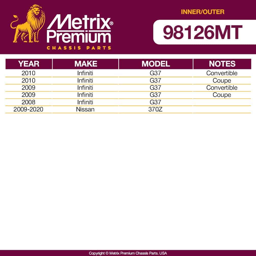 1. COMPATIBLE CON: 2009-2010 Infiniti G37 Convertible, 2009-2010 Infiniti G37 Coupe, 2008 Infiniti G37, 2009-2020 Nissan 370Z.