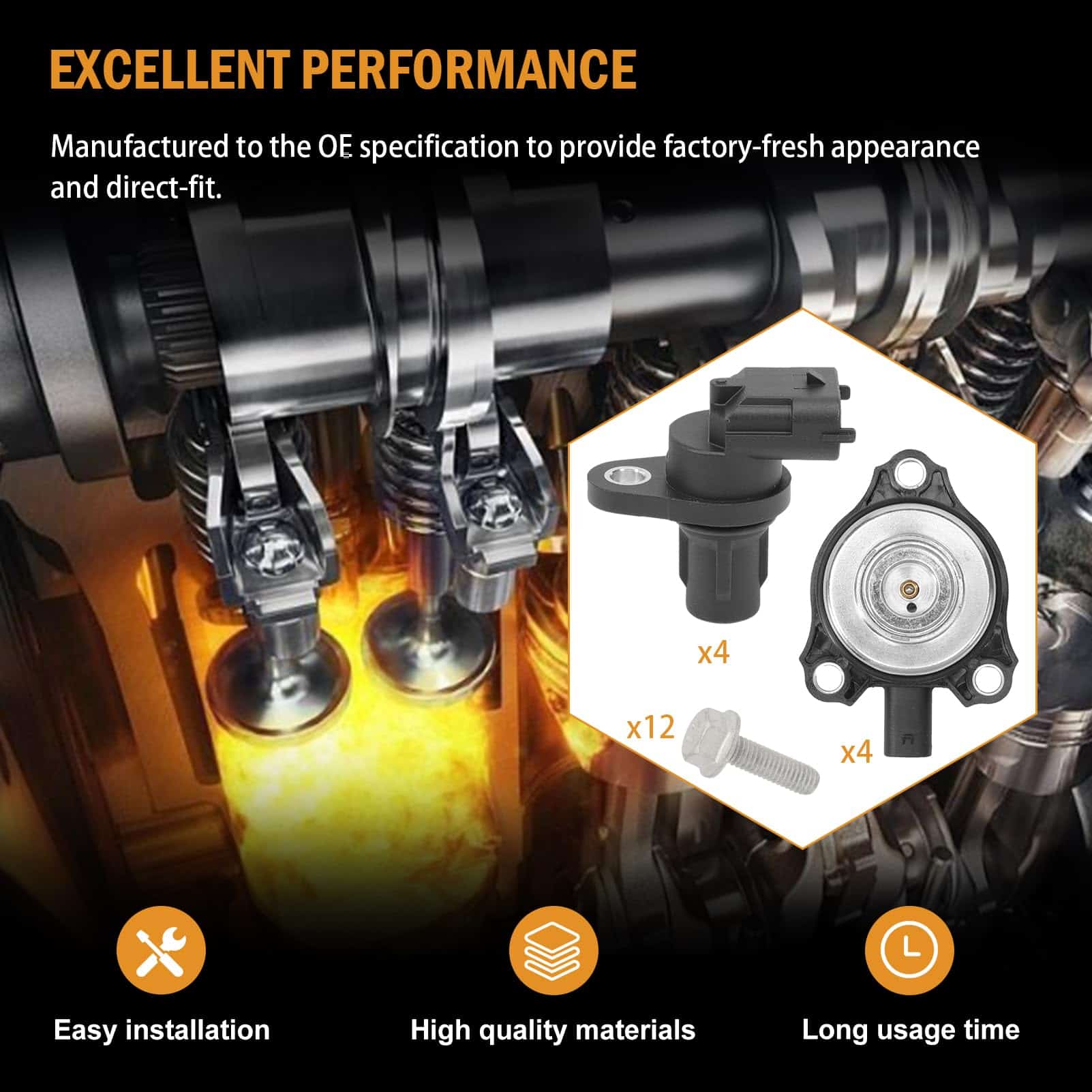 3. Contenido del paquete: Kit de 4 Sensores de Posición del Árbol de Levas + 4 Imanes Solenoides Ajustadores del Árbol de Levas.