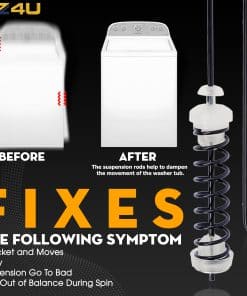 Este kit de varillas de suspensión es compatible con lavadoras de roper, Maytag, Kenmore y Amana, proporcionando una solución fácil y asequible para corregir problemas comunes como cargas desequilibradas, vibraciones excesivas y ciclos de lavado ruidosos. Su ajuste para las varillas de suspensión de lavadoras Admiral garantiza una instalación perfecta para muchos modelos.