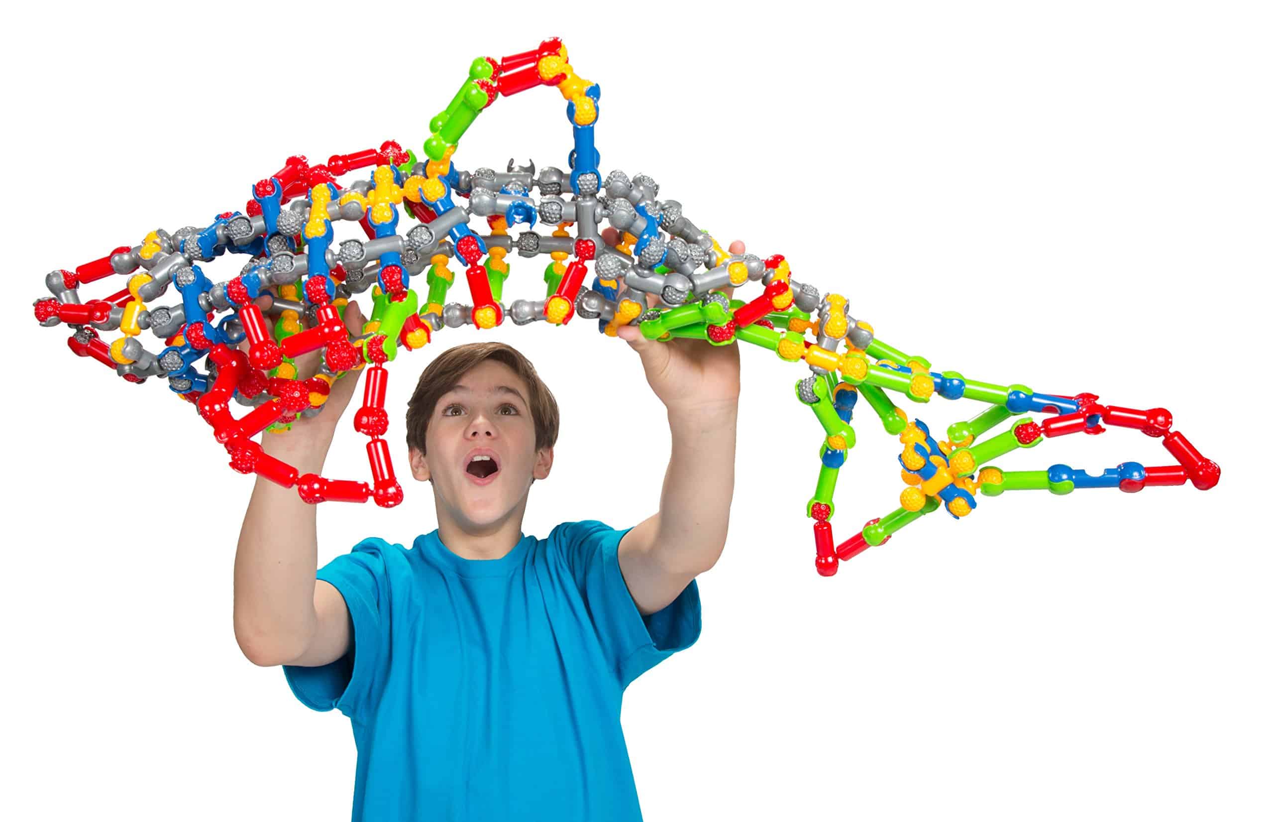 El Kit de 500 Piezas ALEX Toys BuilderZ viene con 6 guías de instrucción para hacer 50 creaciones, incluyendo Megabite, el tiburón o un bolso ZOOB (o crea el tuyo propio). ZOOB no es como cualquier otro set de construcción: las piezas incluyen engranajes, ejes y juntas que se encajan, hacen clic y se unen. ¡Con partes giratorias, giratorias y extensibles, puedes diseñar realmente un juguete con el que jugar, en lugar de simplemente construir algo para mirar. Crea monstruos o vehículos o monstruos que se convierten en vehículos! ¡Las posibilidades son tan infinitas como tu imaginación! Recomendado para niños de 6 años en adelante.