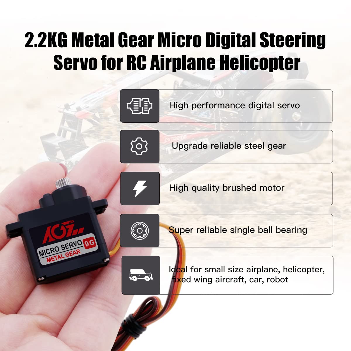 Características Servo Digital de Alto Rendimiento, Mejora Engranaje de Acero Confiable Estructura de Engranajes Metálicos de Alta Precisión Motor Cepillado de Alta Calidad Ideal para Aviones de Pequeño Tamaño, Helicópteros, Aviones de Ala Fija, Coches, Robots