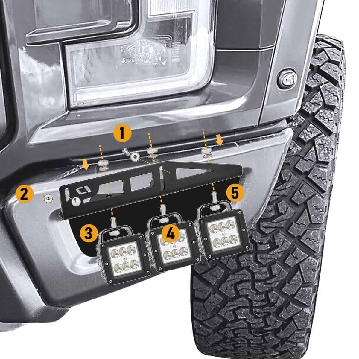 3. Hardware de instalación proporcionado, asegura montaje seguro para la luz de trabajo LED en la parte superior de la cubierta de la Luz Trasera.