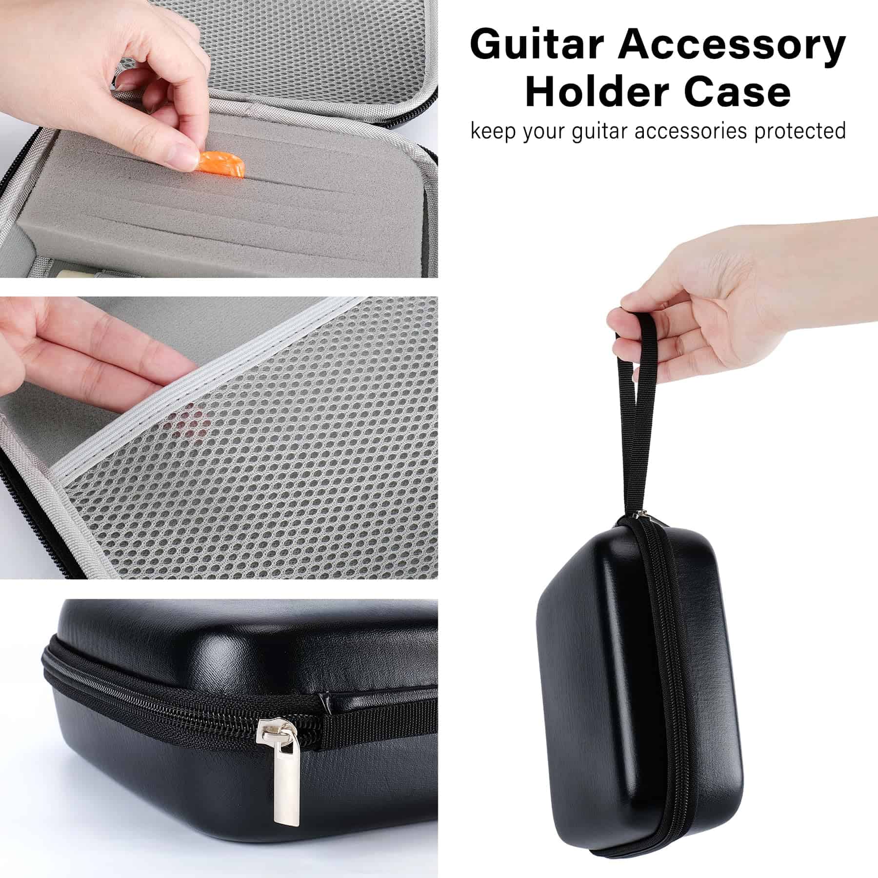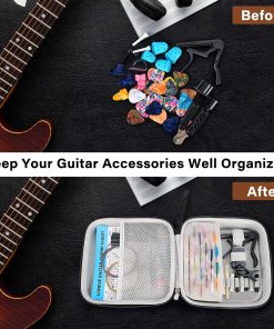 El estuche para accesorios de guitarra está hecho de material PU con buena resistencia al agua. Además, este estuche viene con una correa de mano duradera, que proporciona gran comodidad para viajar. Es un regalo perfecto para tus amigos y familiares.