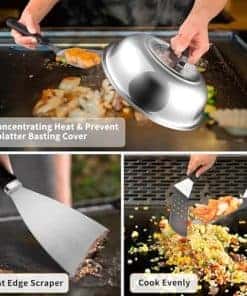 Upgrade your grilling game with this griddle accessories set featuring 24 essential tools. Crafted with heavy-duty, BPA-free stainless steel, these grill accessories resist rust, heat, and bending unlike flimsy alternatives. The griddle accessories are built to withstand rigorous grilling, camping, or flat-top cooking, ensuring durability and safety. Simplify cleanup with dishwasher-safe grill accessories or quick hand-washing. The griddle accessories fit neatly into a compact, travel-ready storage bag with hangers ideal for picnics, RV trips, or backyard BBQs. Chef-Approved Griddle Accessories for Pro Results. Packaged in a sleek gift box, this griddle accessories kit is ideal for Father’s Day, holidays, or outdoor lovers.