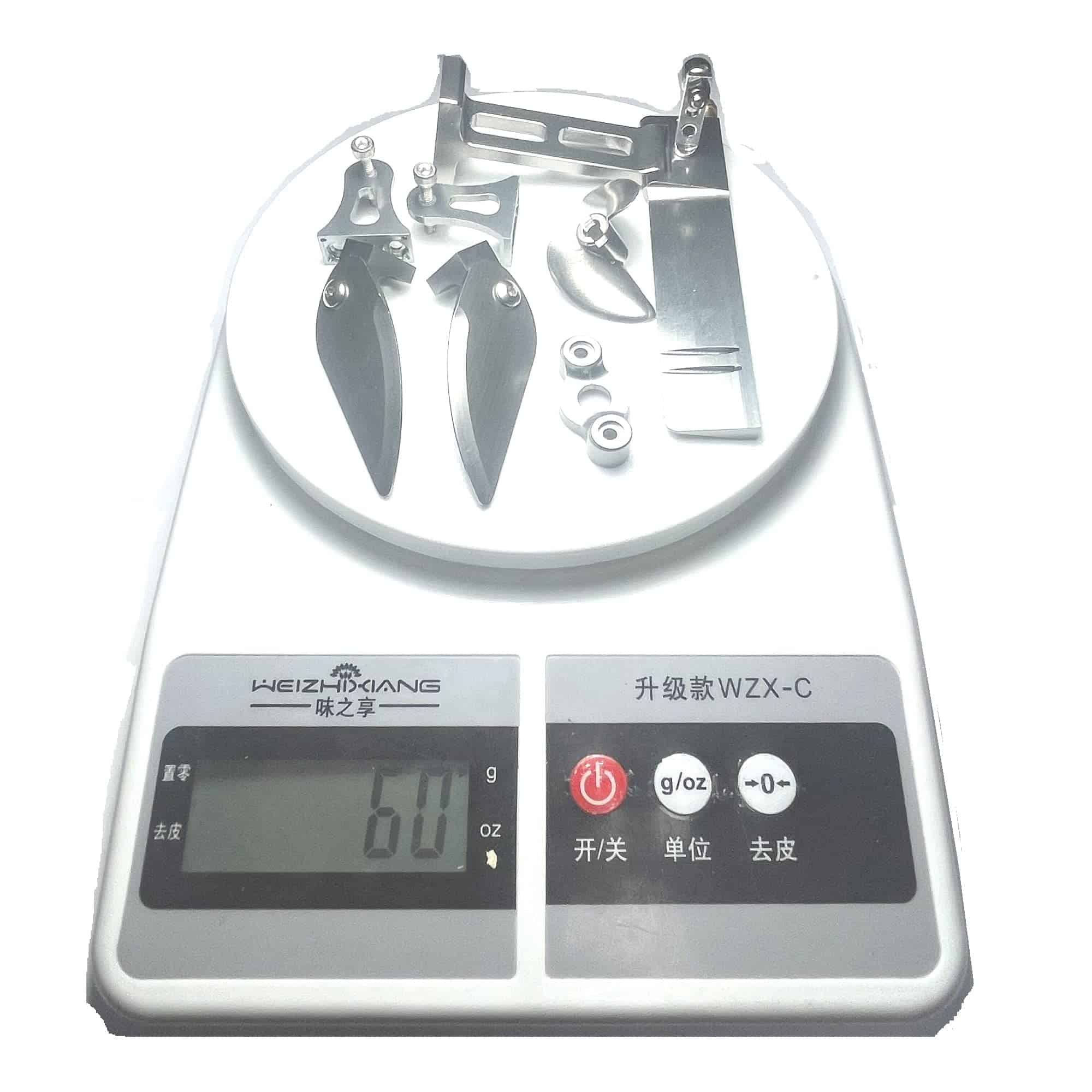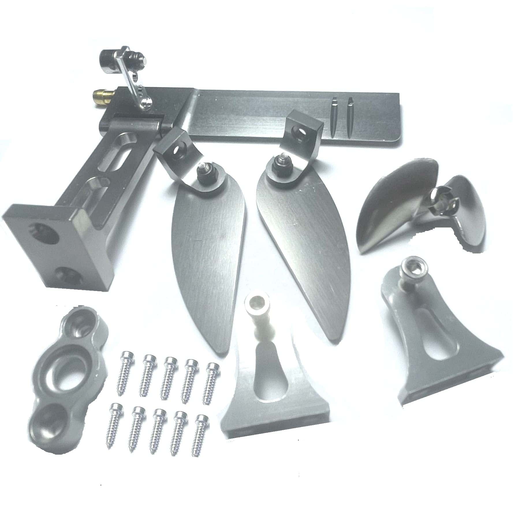 2. Hay un total de 5x kit de metal de actualización en un paquete. 1x conjunto de timón de cola de actualización de metal, 1x timón de navegación de metal de actualización, 1x anillo de prensa de metal impermeable de actualización, 1x pieza presurizada izquierda y derecha de metal de actualización, 1x hélices de metal de actualización.