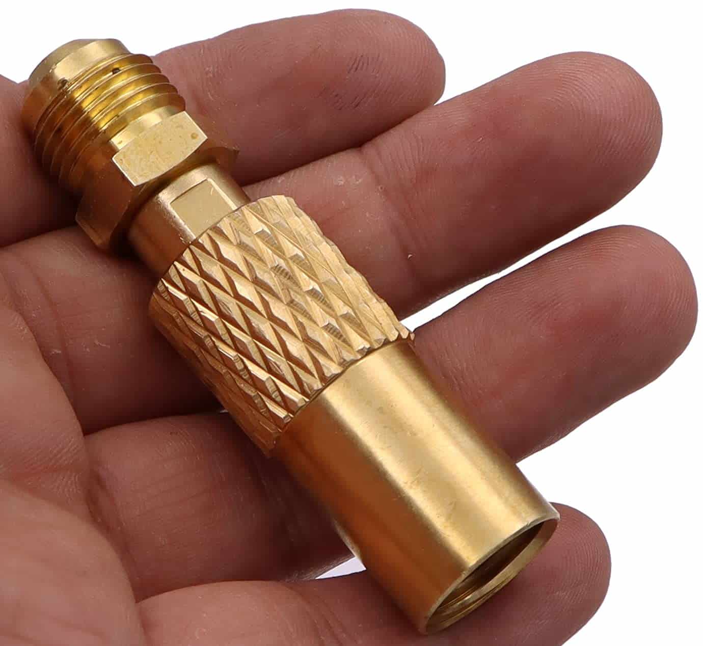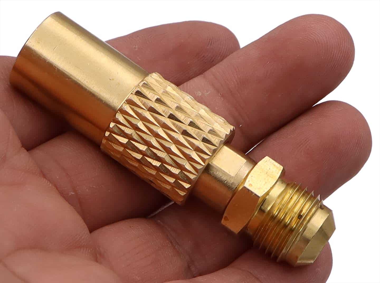 Hecho de 100% latón macizo con mango moleteado fácil de conectar y no se necesitan herramientas