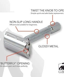 Kit de Afeitado de Lujo para Hombres G.B.S – Navaja de Seguridad DE Mariposa, Brocha de Tejón, Taza de Afeitar, Jabón de Afeitar, Soporte, After Shave, Colonia + Cuchillas, con Bolsa – Ideal Para Viajes, Casa Pack de 9PC