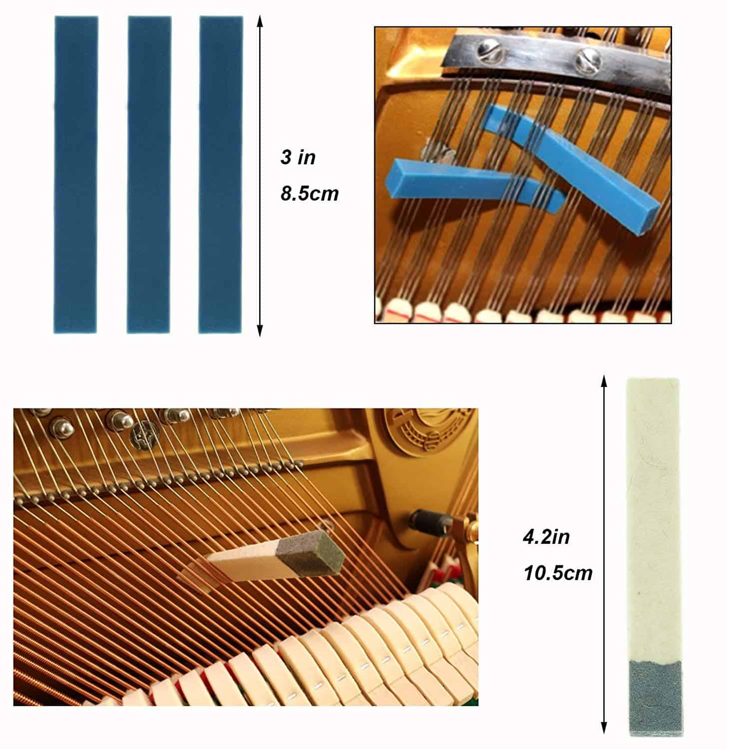 Kit de Afinación de Piano: 16 piezas de herramientas de afinación de piano. Contiene llave de afinación, silenciadores con mangos, silenciadores, tira de temperamento, pinzas, bifurcación, destornillador, clip. Adecuado tanto para principiantes como para profesionales.
