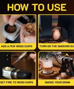4. VERSÁTIL Y GRAN REGALO – Cóctel, Whisky, Carne, Pescado, Queso – añade un sabor ahumado a prácticamente cualquier alimento o cóctel. Este ahumador de cócteles lleva tu fin de semana a nuevas alturas y te hace sentir como un mixólogo y chef profesional. También es un regalo útil para hombres para cualquier persona cercana en tu vida. Excelente elección de regalo para el Día del Padre y otras ocasiones: Cumpleaños, Día del Padre, Aniversario, Día de San Valentín, Acción de Gracias, Navidad, etc.