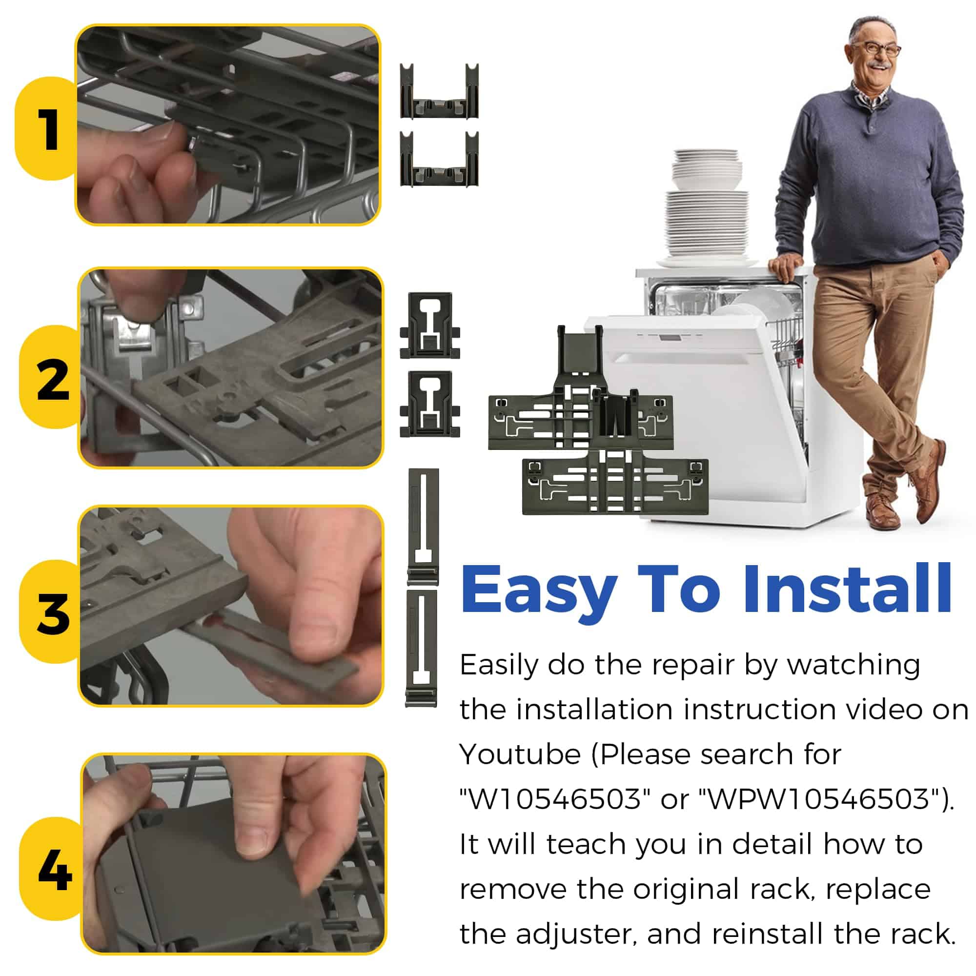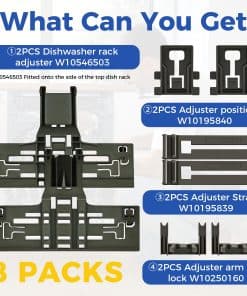 Este producto está hecho del último material polimérico, que es más duradero y resistente al desgaste que otras versiones. ¡Se ajusta a los estándares OEM! Resuelve los siguientes problemas comunes: el regulador de la rejilla superior está roto; el lavavajillas no limpia adecuadamente; la rejilla de lavavajillas no se puede empujar ni sacar. Fácil de instalar, un destornillador y una llave ajustable son útiles para la reparación. Nota: Antes de instalar el producto, apague la energía y use guantes de trabajo para proteger sus manos. Nos importa mucho su experiencia de compra. Si necesita ayuda durante el proceso de compra, envíenos un correo electrónico.