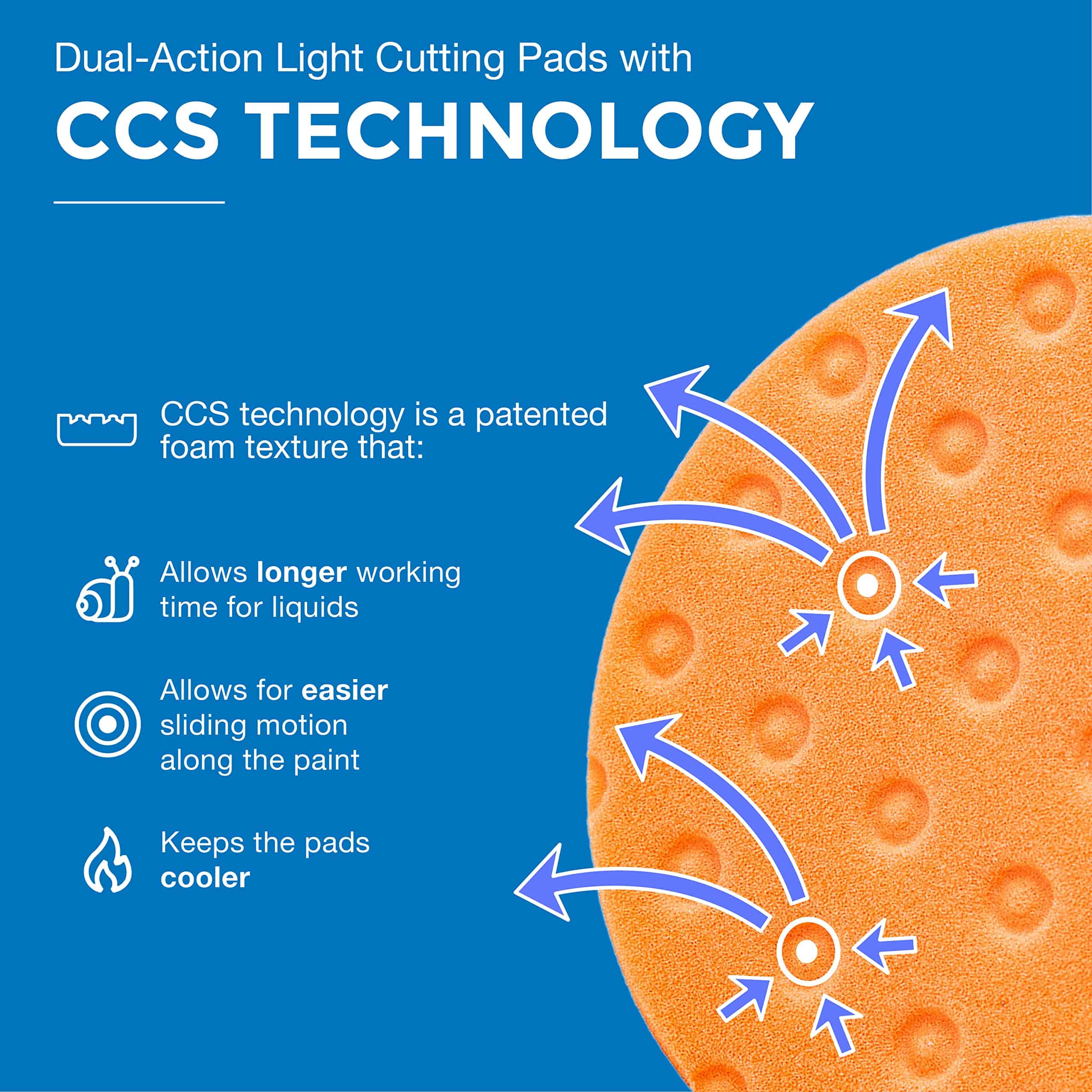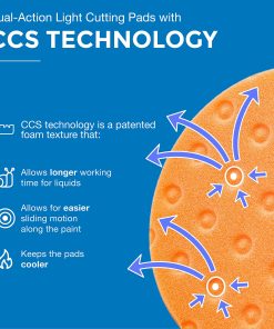 Las almohadillas de tecnología CCS están diseñadas para ser utilizadas en pulidoras de acción dual o aleatoria. El respaldo delgado y cónico con gancho y lazo exacto optimiza su rendimiento. El respaldo de espuma mantiene la máquina pulidora a una distancia segura de la superficie que estás puliendo. Esa espuma también mantiene la temperatura de la almohadilla a un nivel razonable, lo que aumentará la vida útil de la almohadilla. Elige entre una variedad de tamaños, formas de superficie y formulaciones de espuma para manejar virtualmente cada aplicación de corte, pulido y acabado.