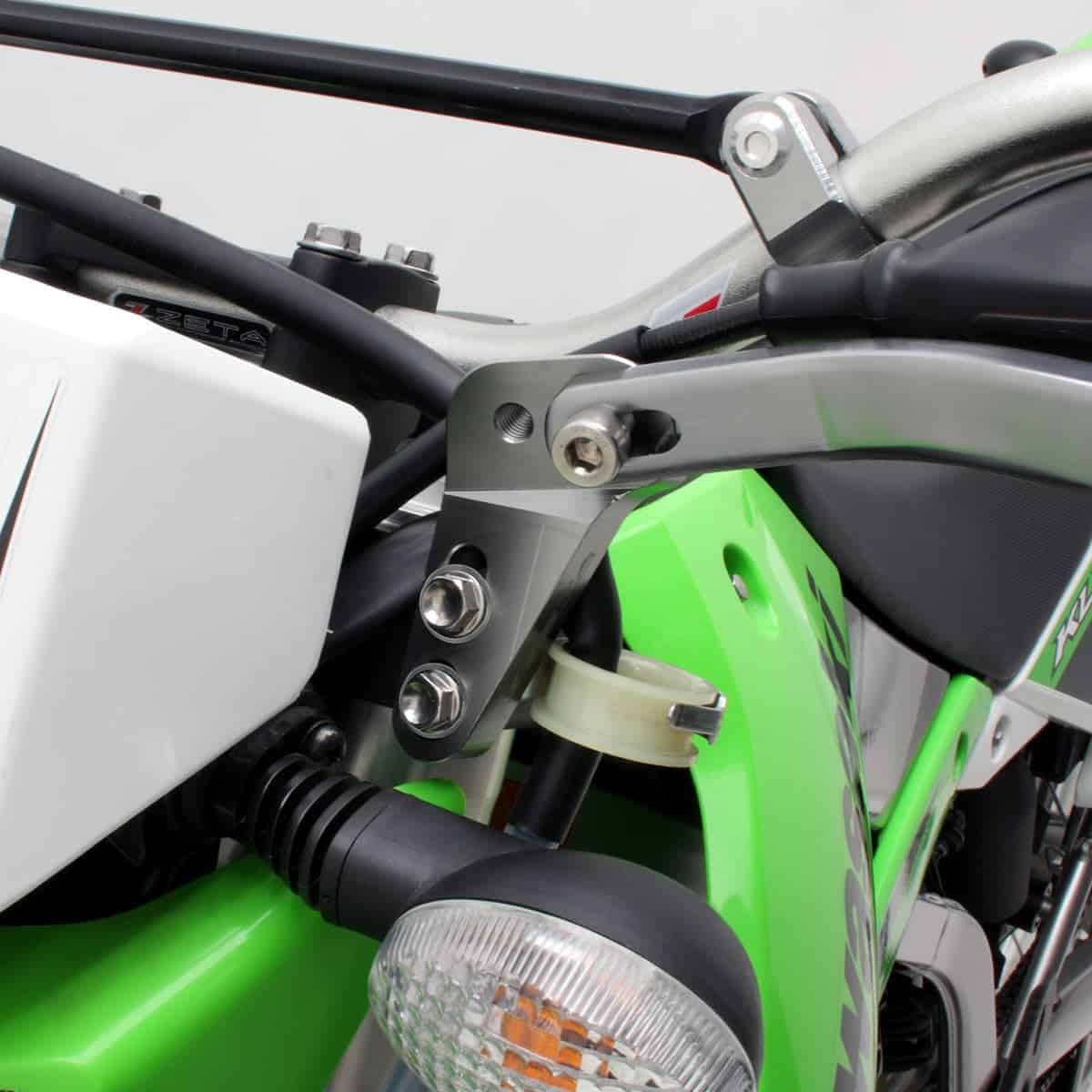 El kit de montaje rígido de la abrazadera triple superior para protectores de mano Armor proporciona un ajuste más duradero. Previene la rotación de los protectores de mano y protege tus palancas de control y acelerador en caso de una caída. Puede ser utilizado en motocicletas en las cuales los pernos de la horquilla del triple clamp superior están sujetos desde el lateral. Fabricado en aluminio A7009 mecanizado CNC, color titanio anodizado duro con logo impreso láser. Viene con pernos especiales de sujeción. No se puede utilizar en abrazaderas superiores cuyos pernos de horquilla están sujetos desde la parte trasera. Puede ser necesario modificar los protectores de mano para adaptarse a algunas curvas del manillar.