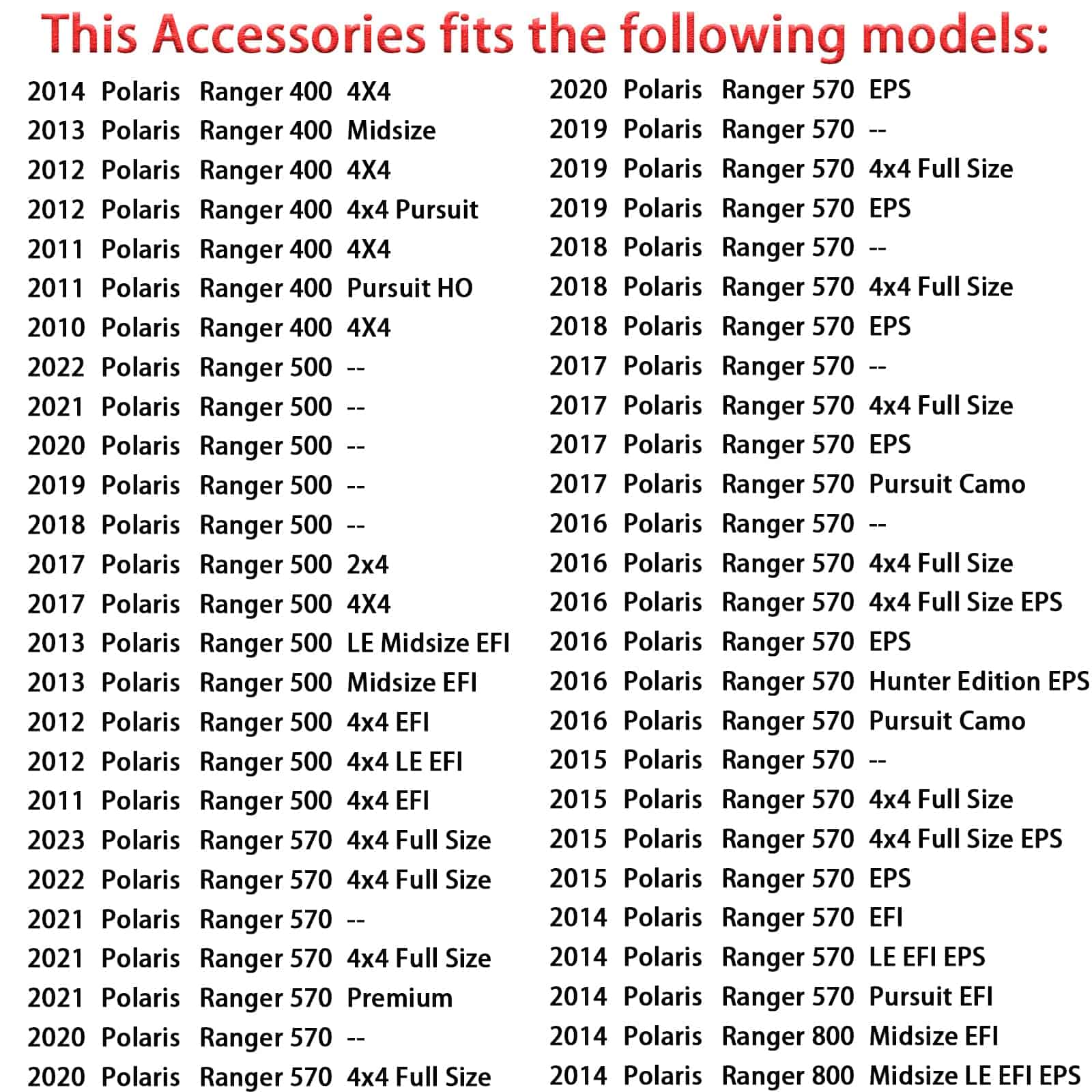 – Para Polaris Ranger 500 2011-2013 2017-2022