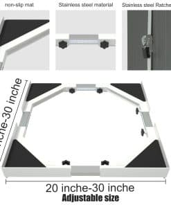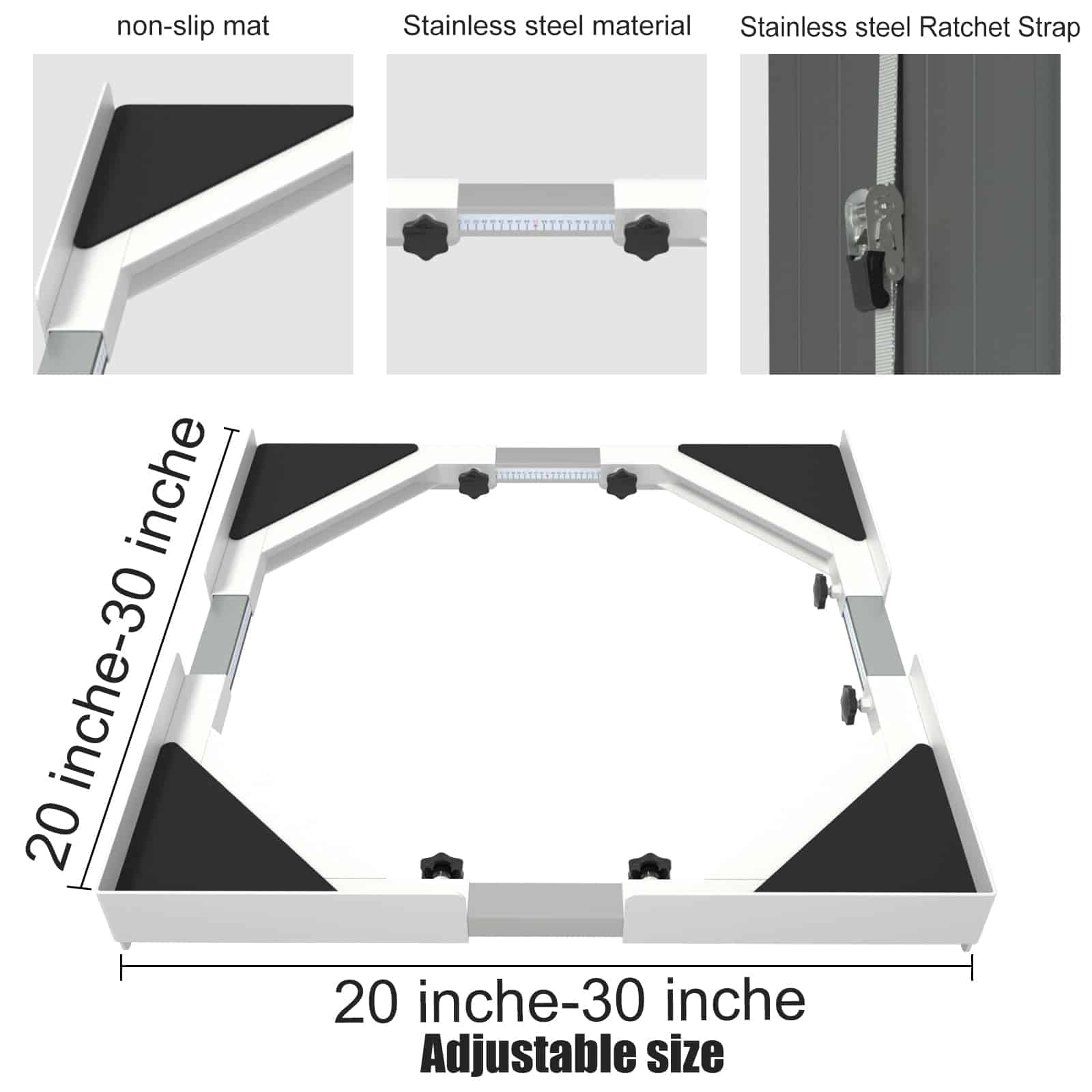 El Kit de Apilamiento de Lavadora y Secadora de Zsytbyyds es estable y resistente, todo en acero pesado, más resistente y un buen ayudante para tu familia para hacer que tu lavandería sea más ordenada y ahorrar espacio. Compatible con todos los tamaños de lavadora/secadora: el kit de apilamiento de lavadora y secadora ajustable está hecho de acero inoxidable premium, adecuado para lavadoras y secadoras de 24″/25″/26″/27″/28″/29″, con un tamaño máximo de 30″ x 30″ (ancho x profundidad). Beneficios de Usar un Kit de Apilamiento Resistente para Lavadora y Secadora: el kit de apilamiento de lavadora y secadora libera espacio de manera eficiente y es compatible con diferentes marcas de lavadoras y secadoras, lo que te permite apilar de forma segura y eficiente la lavadora y la secadora. Fácil de montar: no se necesitan herramientas ni hardware, el montaje se puede completar en 5 minutos siguiendo las instrucciones. Finalmente, coloque la secadora sobre la lavadora y asegúrela con una correa de trinquete para completar todos los pasos de montaje. Servicio postventa: Zsytbyyds promete que, siempre que compremos nuestros productos, garantizamos que todo se devolverá y reemplazará si hay algún problema en el futuro.