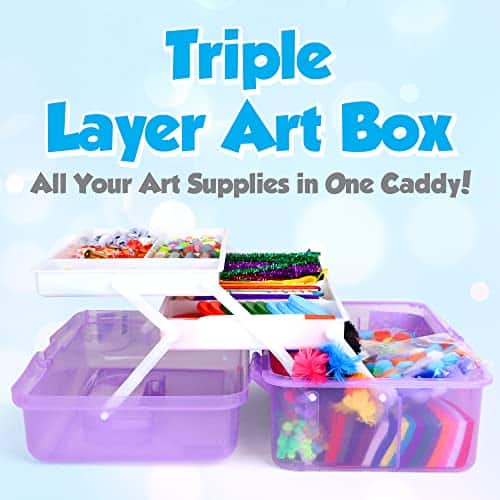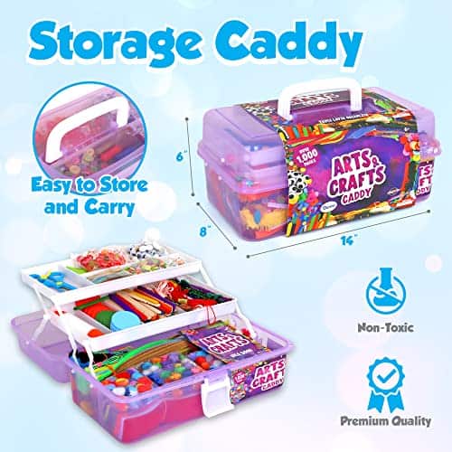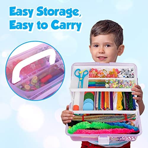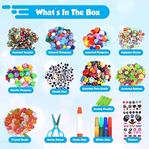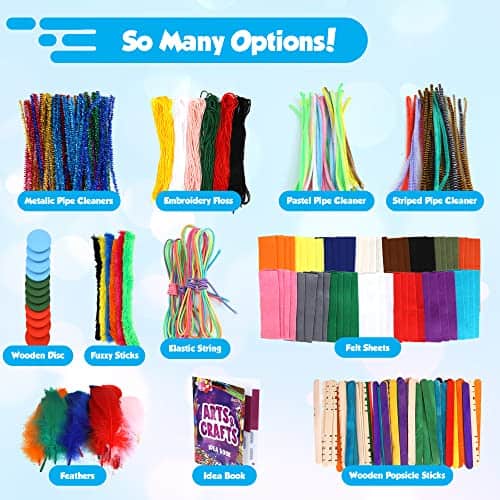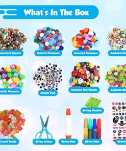¡Excelente alternativa al tiempo frente a la pantalla que a los niños les encantará! Explora la infinita variedad de suministros educativos y suministros para manualidades neatly quartered en tu caja de arte. Los artículos están envueltos individualmente en una bolsa de celofán para mayor comodidad. La calidad superior y la variedad de colores hacen de este tu kit de proyecto ideal para el aula o para casa.