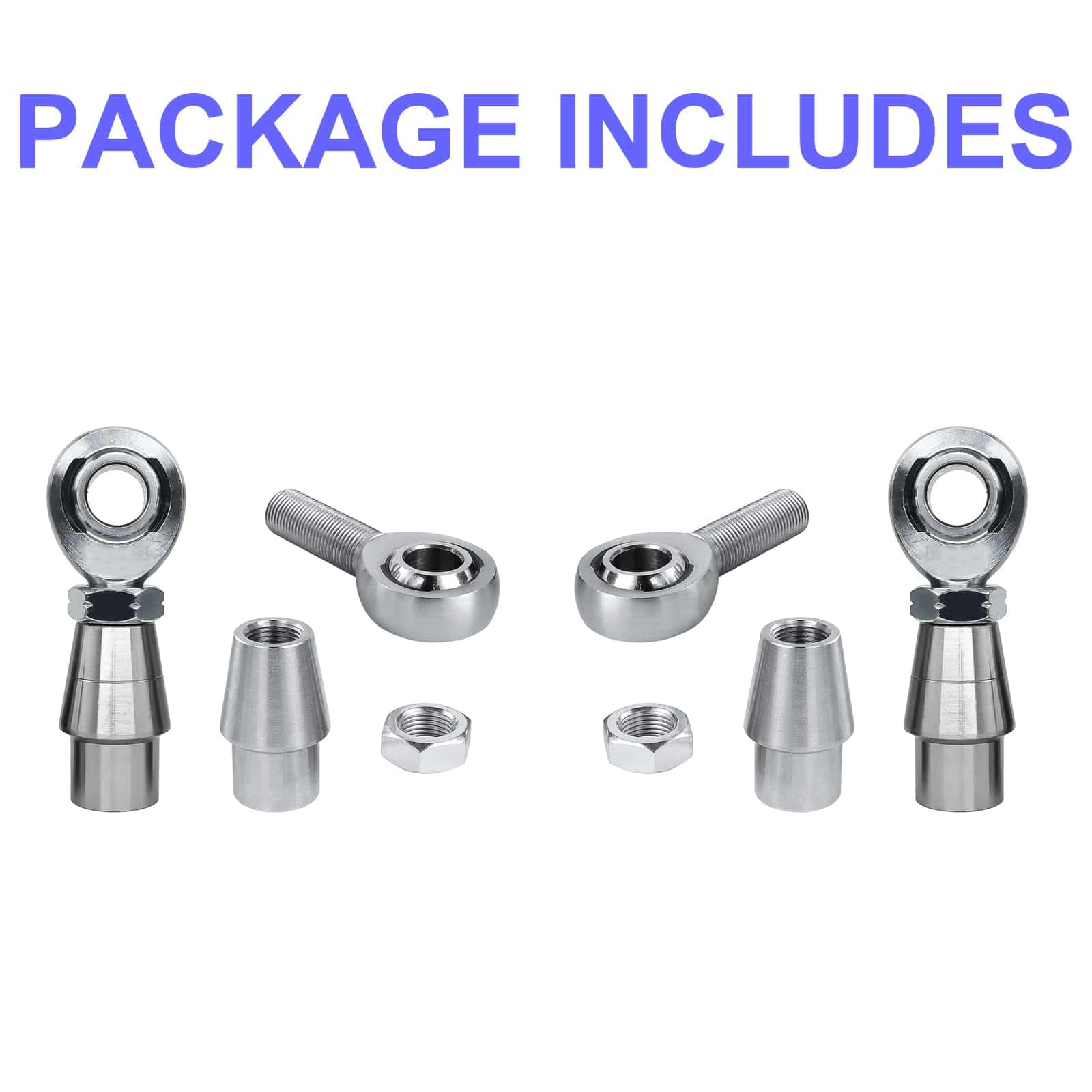1. Kit completo de articulaciones Heim de 5/8″: Este kit incluye articulaciones Heim de rosca izquierda y derecha, adaptadores de tubo para tubos de .790″ de diámetro interior y tuercas de bloqueo para una instalación segura.