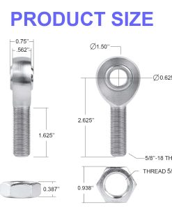 5. Ajuste de precisión: Las articulaciones Heim tienen un eje de 5/8″ con 18 hilos por pulgada y un agujero de 5/8″, que se ajusta a tamaños de tubo de 1 1/4″ de diámetro exterior x .120″ de pared para un rendimiento confiable en aplicaciones de alto estrés.