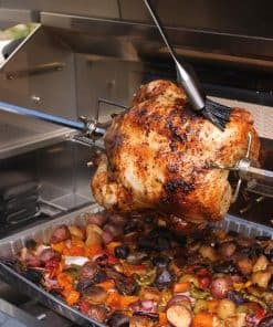 Kit de asador diseñado para adaptarse a parrillas de gas de 5 quemadores Blaze de 40 pulgadas. Este kit te permite ampliar tus opciones de cocina al aire libre, proporcionando la posibilidad de asar hasta 15 libras de comida de manera uniforme. Incluye un motor para hacer girar la varilla para asar, la varilla misma con mango para un fácil manejo, 2 tenedores para sujetar los alimentos y contrapeso para un asado equilibrado. No compatible con las parrillas Blaze Professional LUX. Aprovecha al máximo tu parrilla con este kit de asador de alta calidad.