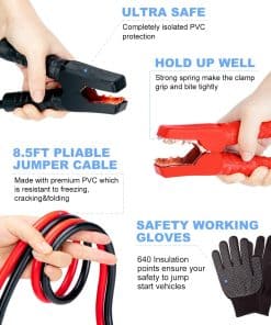 Este kit de asistencia de emergencia para automóvil AUTODECO 105 PCS con compresor de aire portátil y cables de arranque es un conjunto completo que incluye suministros de primeros auxilios y herramientas de reparación de automóviles para satisfacer la mayoría de las emergencias automovilísticas repentinas. El cable de arranque seguro tiene la superficie cubierta por material de PVC y está fabricado con alambre de cobre premium, lo que garantiza su funcionamiento incluso en condiciones extremas de invierno. Este kit de emergencia multiusos es un accesorio esencial para cada conductor, adecuado para diversas circunstancias como climas invernales, desplazamientos diarios y viajes por carretera. Además, su diseño ligero y compacto permite llevarlo fácilmente en el asiento trasero, maletero o compartimento de la llanta de repuesto. En resumen, este kit de asistencia de emergencia para automóvil AUTODECO es un regalo práctico y útil que sin duda será apreciado por cualquier persona que desee estar preparada para lo inesperado en la carretera.