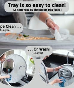 INSTRUCCIONES DE CUIDADO PARA LA BANDEJA: Limpiar con un paño o lavar con agua caliente y jabón. Dejar secar al aire y almacenar en un lugar seco.