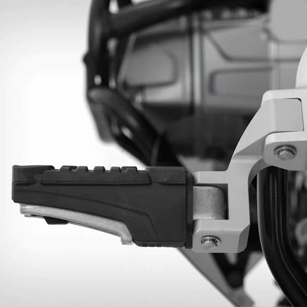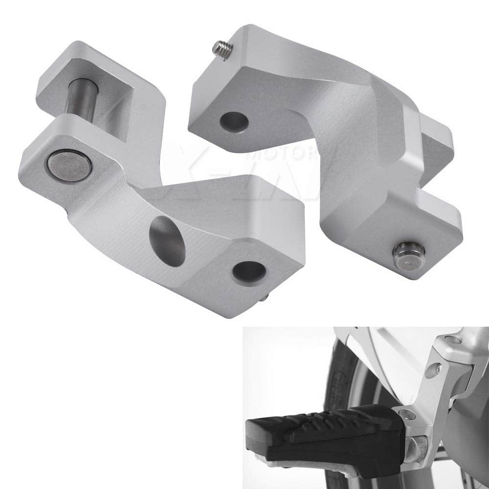 La posición de las alforjas puede causar un paseo incómodo para las piernas del pasajero y a menudo conduce a una posición sentada encogida. El juego de bajada mueve el reposapiés hacia abajo y ligeramente hacia adelante, permitiendo una posición de asiento más relajada y confortable durante los viajes largos. Fabricado en aluminio mecanizado y anodizado en plata. El producto viene con todas las piezas de montaje necesarias. Esto le permite conservar los reposapiés originales y usar libremente las alforjas, mientras optimiza la comodidad del pasajero con estas modificaciones rápidas.