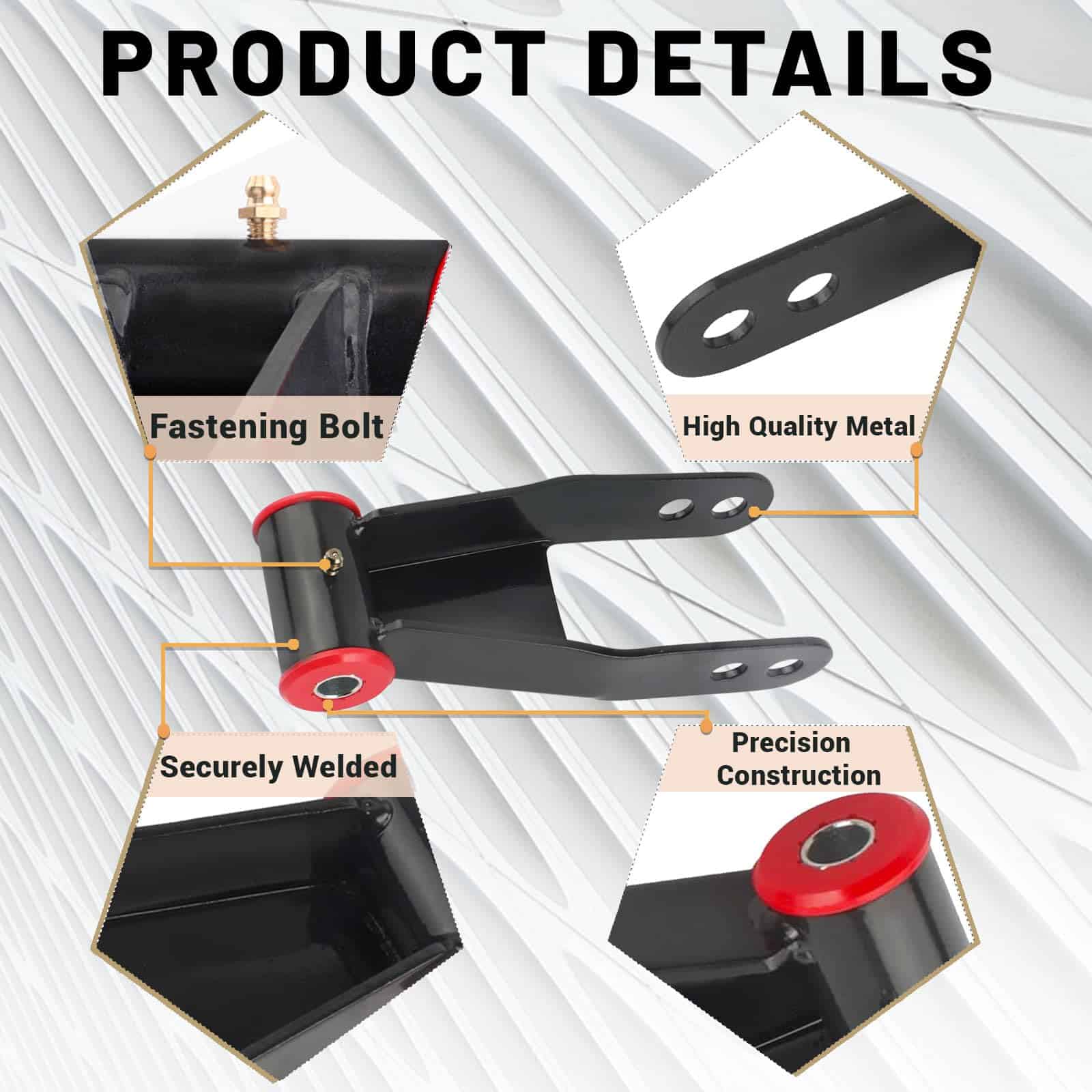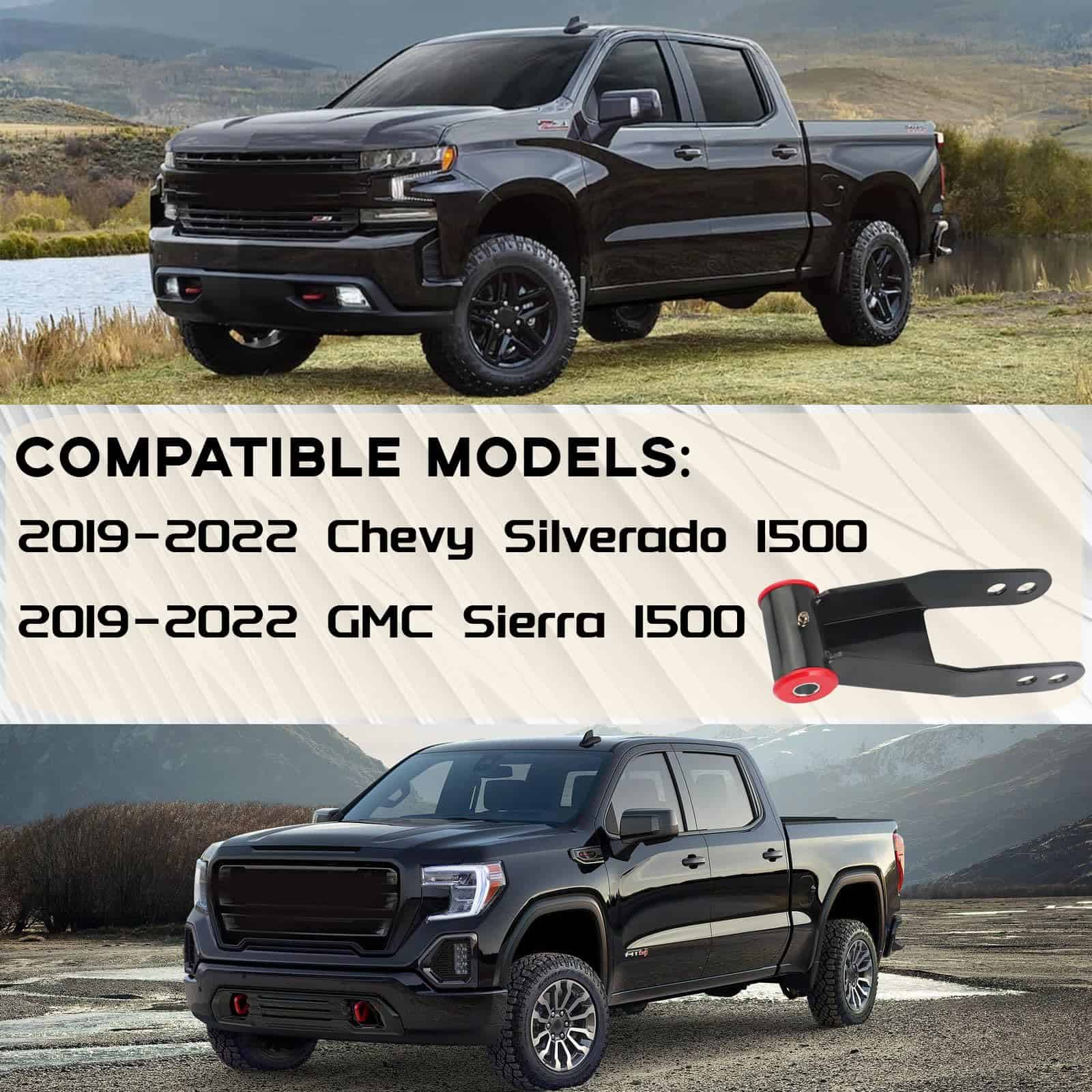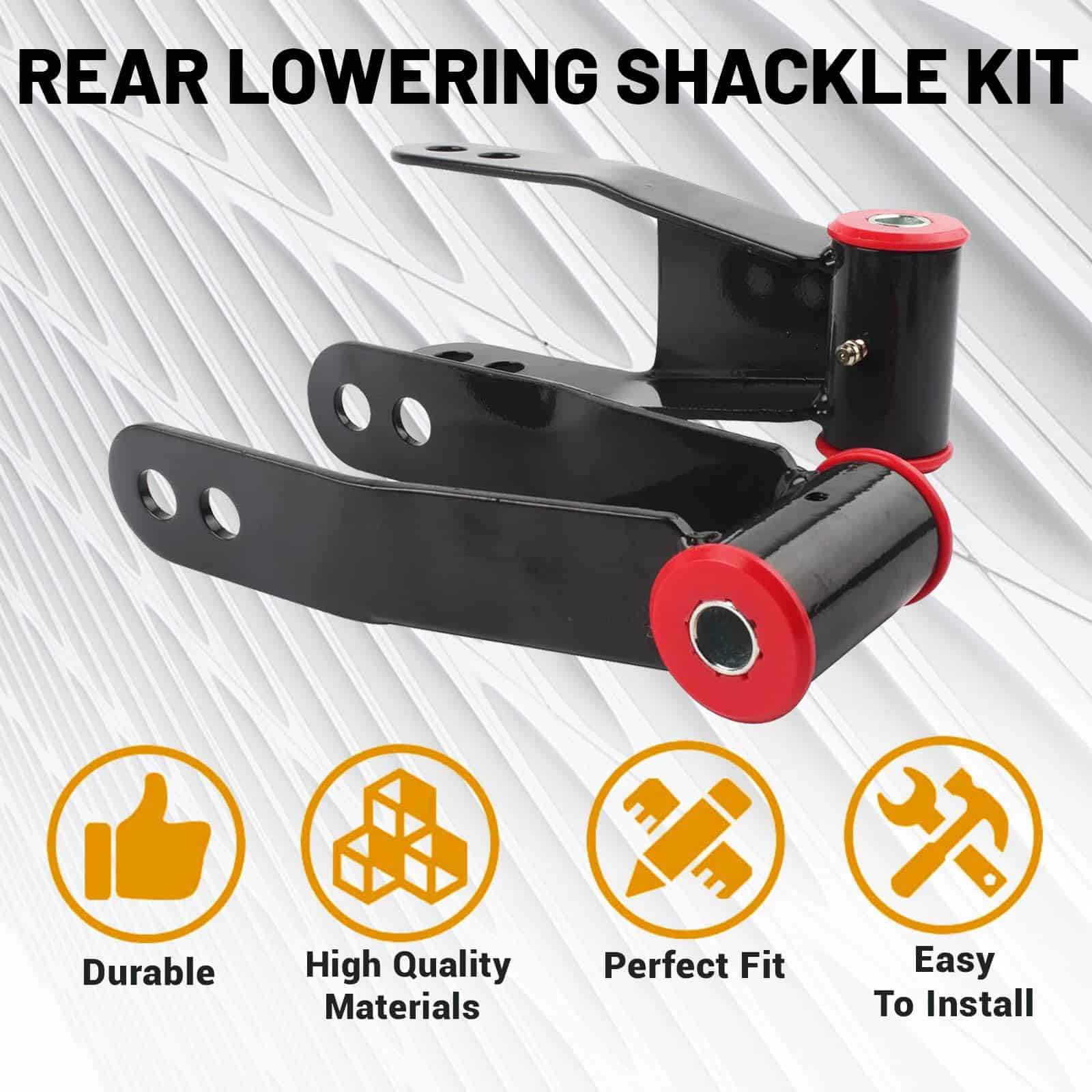 Por favor, verifique el número de pieza OE en su parte original antes de comprar este Kit de Bajada de Suspensión Trasera de 2 pulgadas. Es compatible con Chevy Silverado 1500 2019-2022 y Sierra 1500 2019-2022. El kit está fabricado con acero resistente a la corrosión y con revestimiento antioxidante para brindar mejor resistencia, anticorrosión y una larga vida útil. El paquete incluye 1 par de kits de grilletes de resorte de lámina tal como se muestra en la imagen. Este producto cuenta con una garantía de 12 meses y ha sido diseñado para cumplir con estrictos estándares de control de calidad. Es fácil de instalar y garantiza una experiencia duradera y de alto rendimiento en su vehículo.