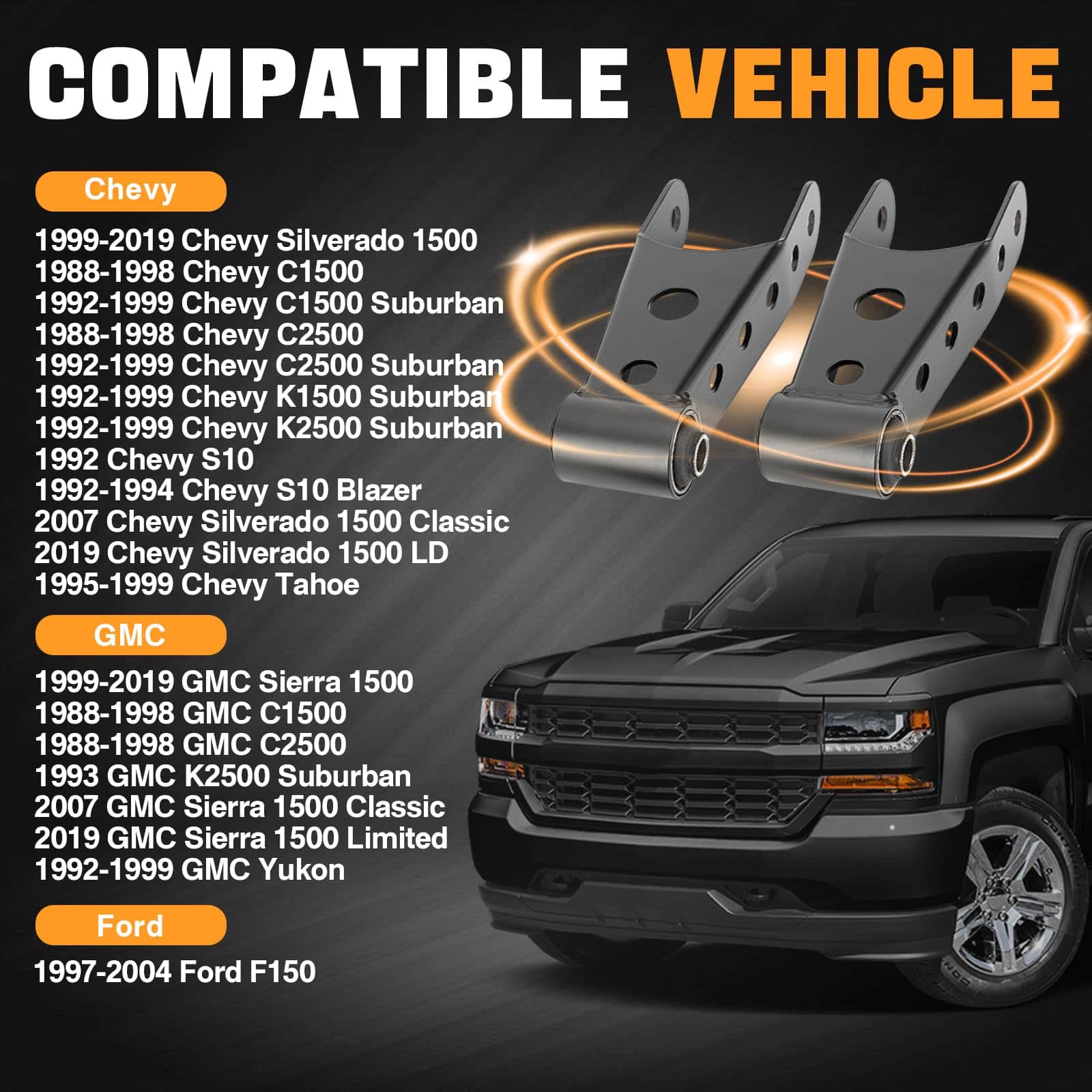1999-2019 Chevy Silverado 1500 1999-2019 GMC Sierra 1500 1988-1998 Chevy C1500 1992-1999 Chevy C1500 Suburban 1988-1998 Chevy C2500 1992-1999 Chevy C2500 Suburban 1992-1999 Chevy K1500 Suburban 1992-1999 Chevy K2500 Suburban 1992 Chevy S10 1992-1994 Chevy S10 Blazer 2007 Chevy Silverado 1500 Classic 2019 Chevy Silverado 1500 LD 1995-1999 Chevy Tahoe 1988-1998 GMC C1500 1988-1998 GMC C2500 1993 GMC K2500 Suburban 2007 GMC Sierra 1500 Classic 2019 GMC Sierra 1500 Limited 1992-1999 GMC Yukon 1997-2004 Ford F150