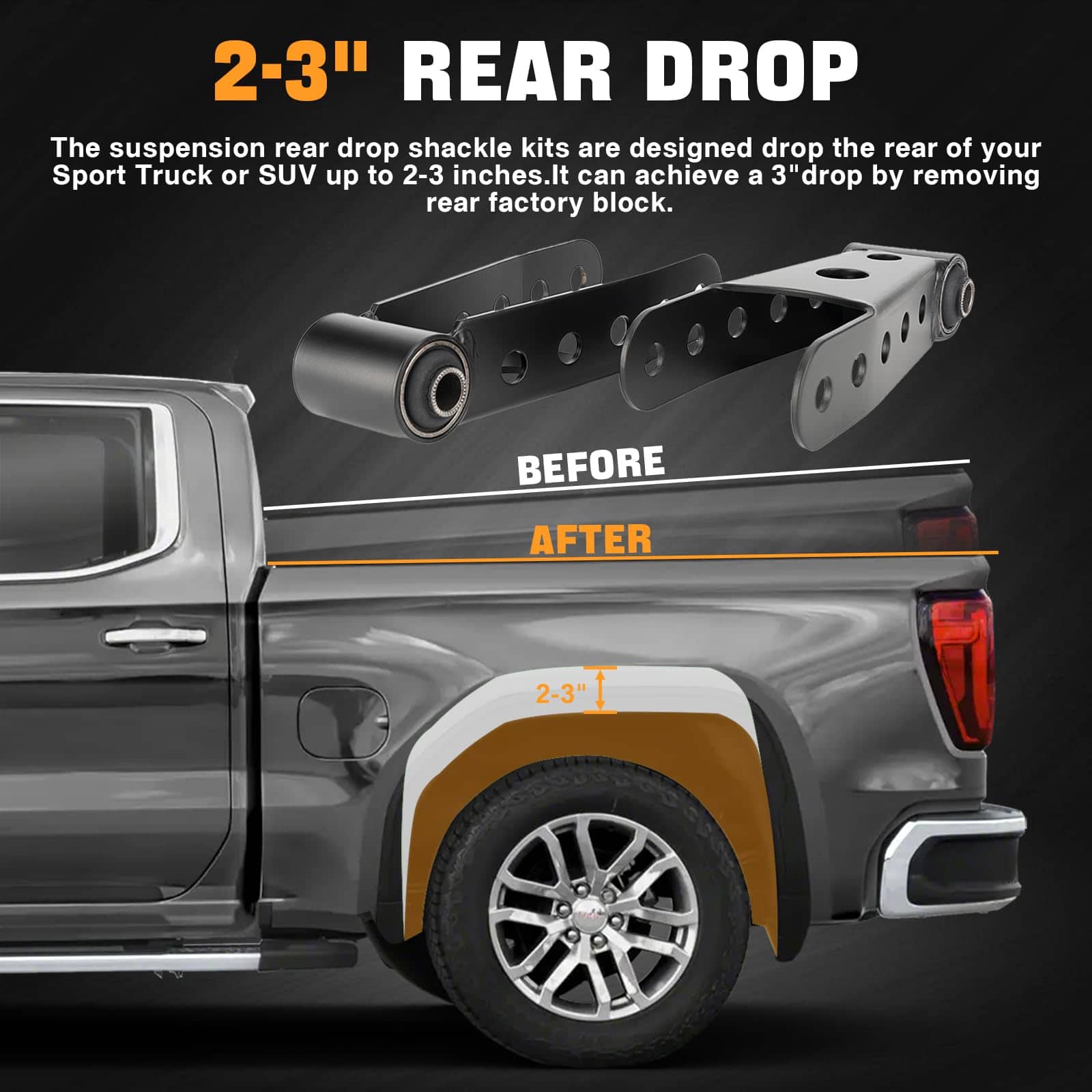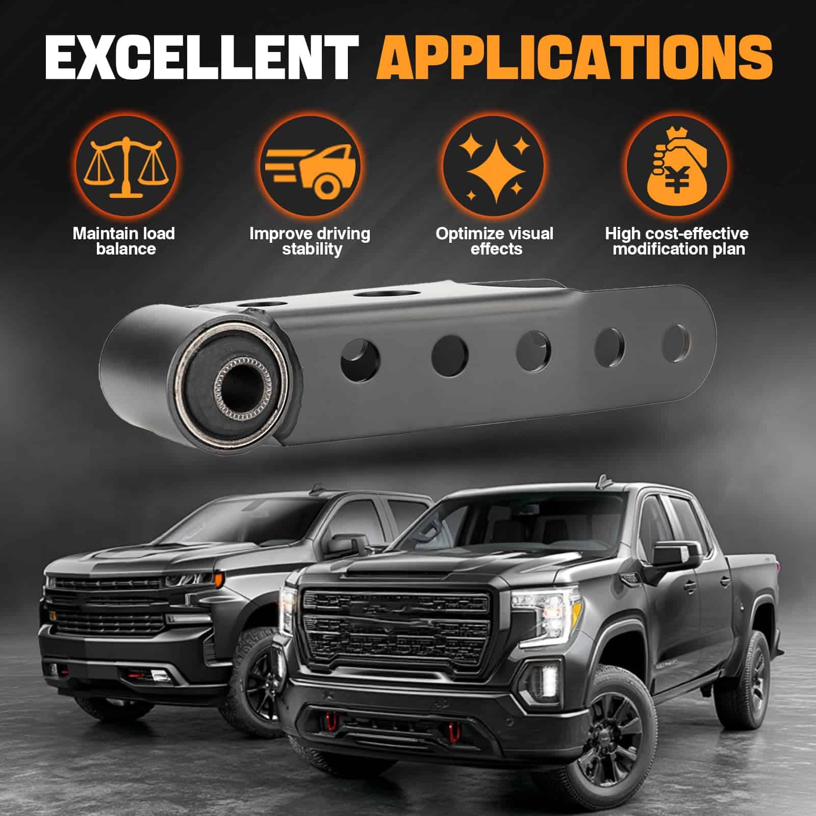 De acuerdo a los diferentes años de Silverado 1500, los kits de rebaja se instalarán en diferentes direcciones.