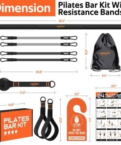 El kit de barra de Pilates con bandas de resistencia es el equipo perfecto para realizar entrenamientos de cuerpo completo en casa o en el gimnasio. La barra de Pilates de alta calidad está compuesta por tres tubos de acero que se ensamblan fácilmente y cuentan con protección de espuma antideslizante de alta densidad. Adecuada tanto para principiantes como para profesionales de 5.2′ a 5.8′. Hecho de látex natural, incluye 4 bandas de resistencia que se pueden combinar de varias formas para ajustar la intensidad del ejercicio. Además, viene con pósters de entrenamiento de barra de Pilates que son fáciles de seguir incluso para principiantes.