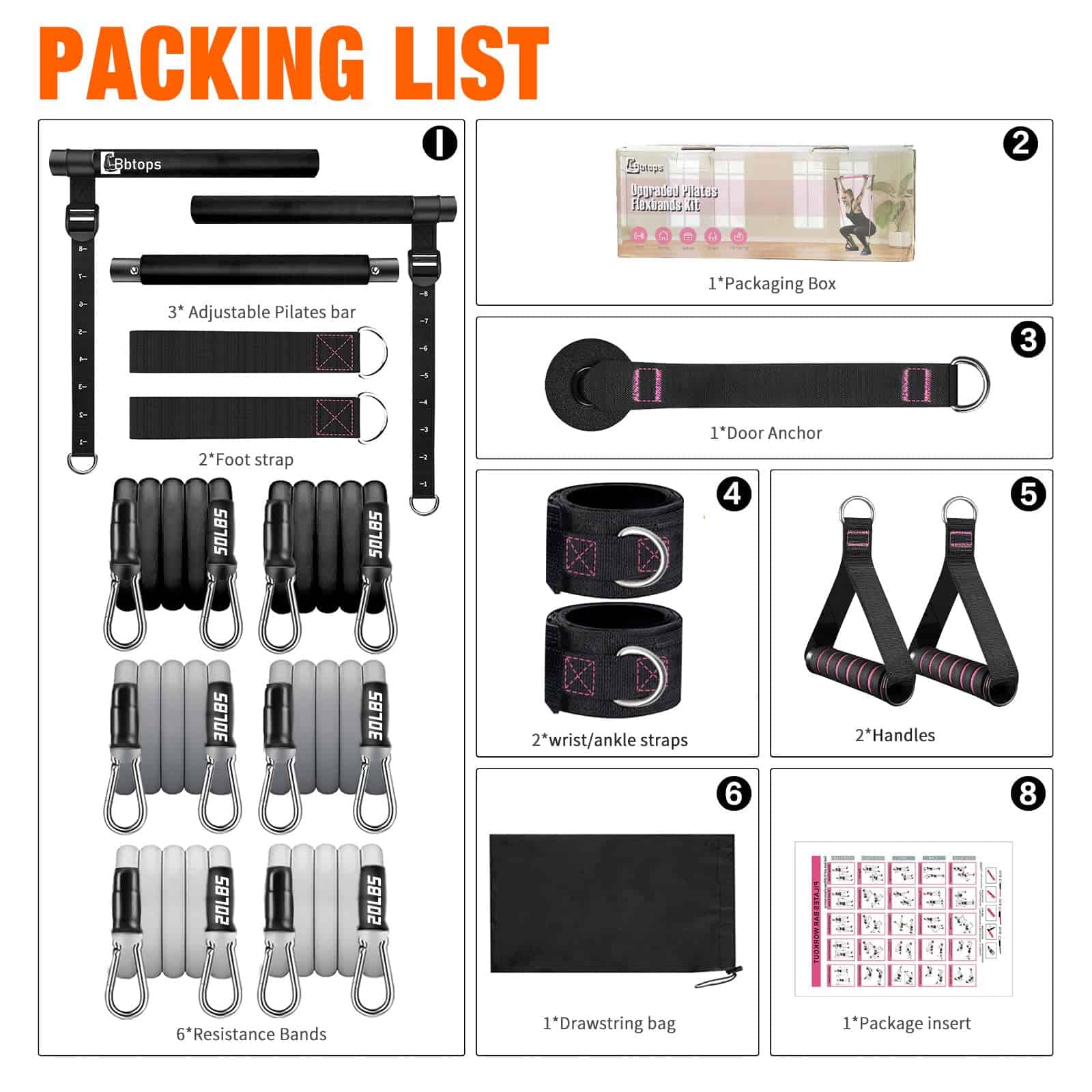 Kit de Barra de Pilates con Bandas de -Negro (Upgrade 20/30/