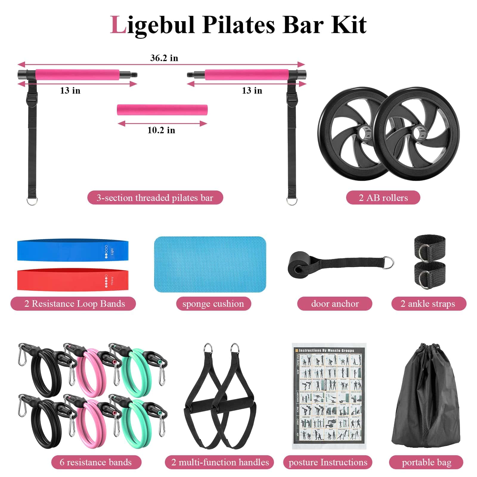 Kit de Barra de Pilates Ligebul con Bandas de Resistencia,
