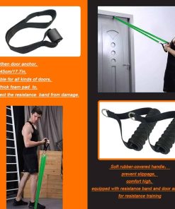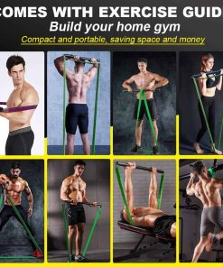 Con solo un set de equipo, experimentarás el proceso de entrenamiento desde baja intensidad hasta alta intensidad. La circunferencia de la banda de resistencia es de 208cm/81.9in. Grosor de la banda de resistencia: 0.45cm/0.2in. Rojo: Resistencia de 15-30 libras, ideal para principiantes. Negro: Resistencia de 25-65 libras, adecuado para entrenamientos intermedios y mujeres. Morado: Resistencia de 35-85 libras, ideal para entrenamientos avanzados y hombres. Verde: Resistencia de 50-125 libras, apto para profesionales y hombres fuertes. Kit de fitness multifuncional que permite la combinación libre de equipos para realizar una variedad de ejercicios. Incluye barra de fitness, mangos, bandas de resistencia, anclaje de puerta, clips de conexión triangular, manual de usuario y bolso de mano.