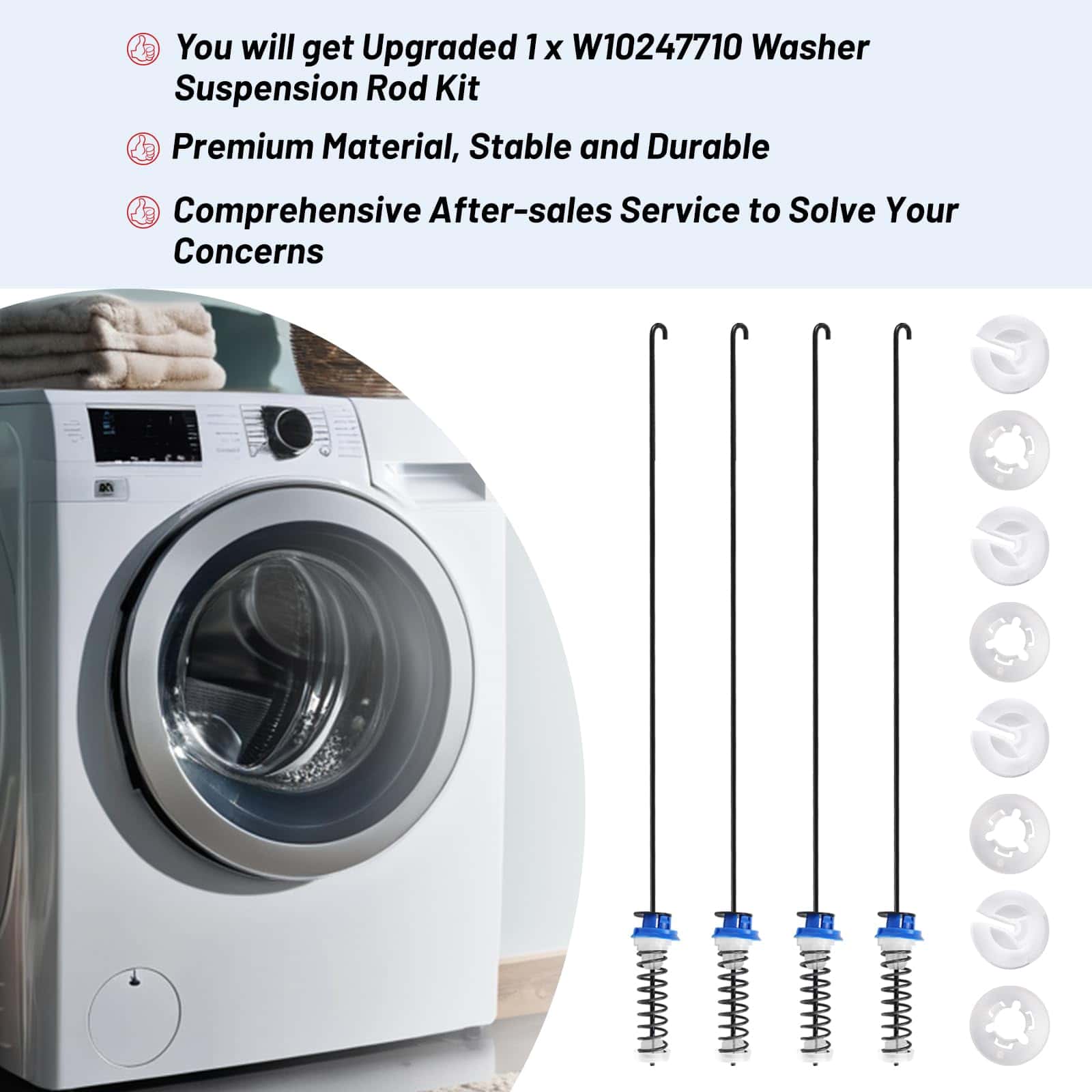 El kit de barra de suspensión W10247710 soporta la tina de la lavadora y la mantiene estable durante cargas desequilibradas. Fabricado con materiales duraderos y probado por el fabricante. Fácil de instalar, ahorra tiempo y dinero. Si tiene alguna pregunta o problema con el producto, contáctenos y estaremos encantados de servirle y asegurarnos de que quede satisfecho.