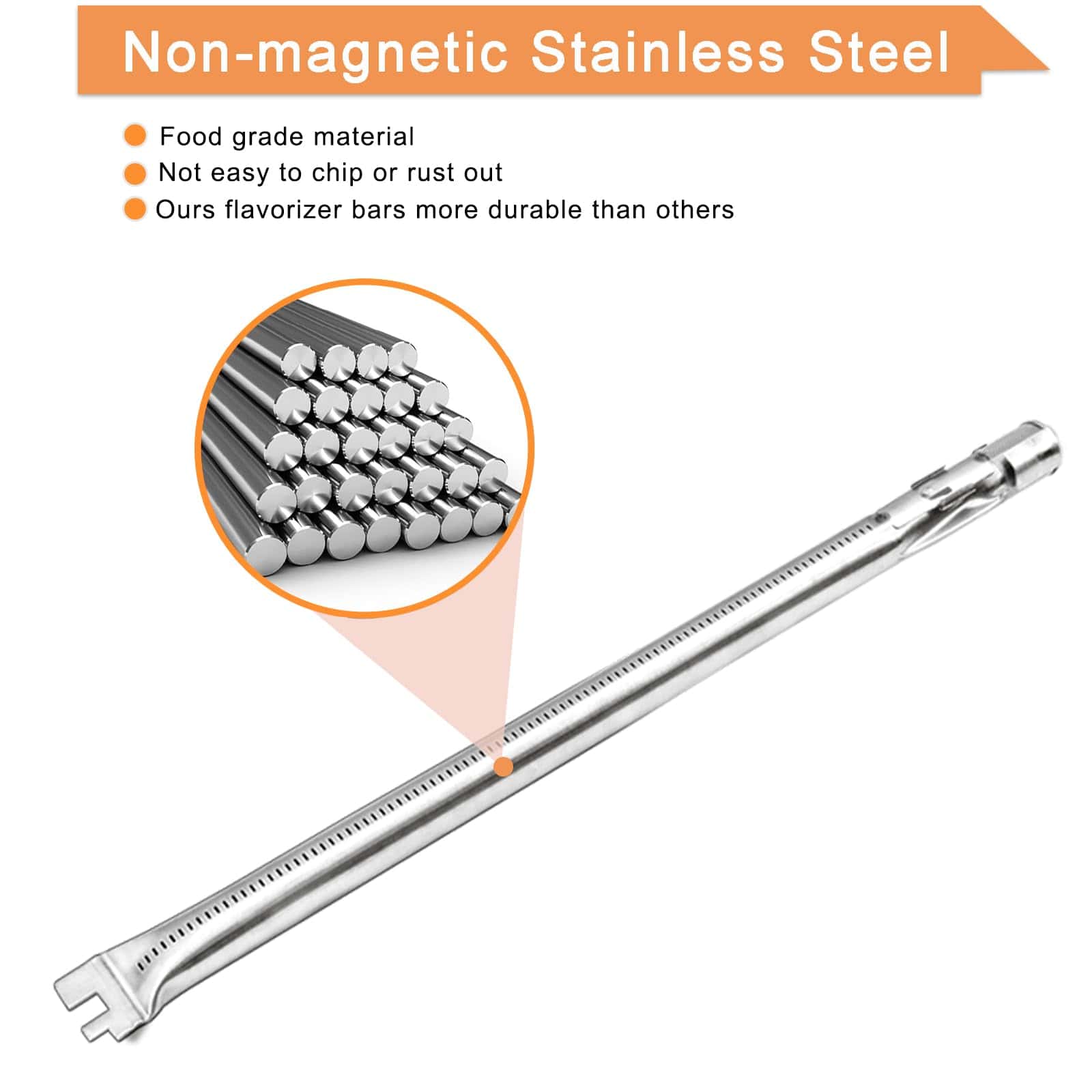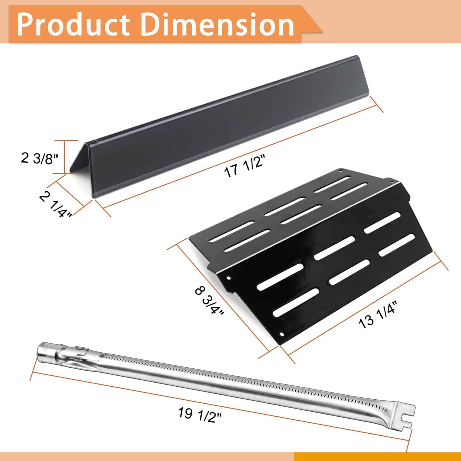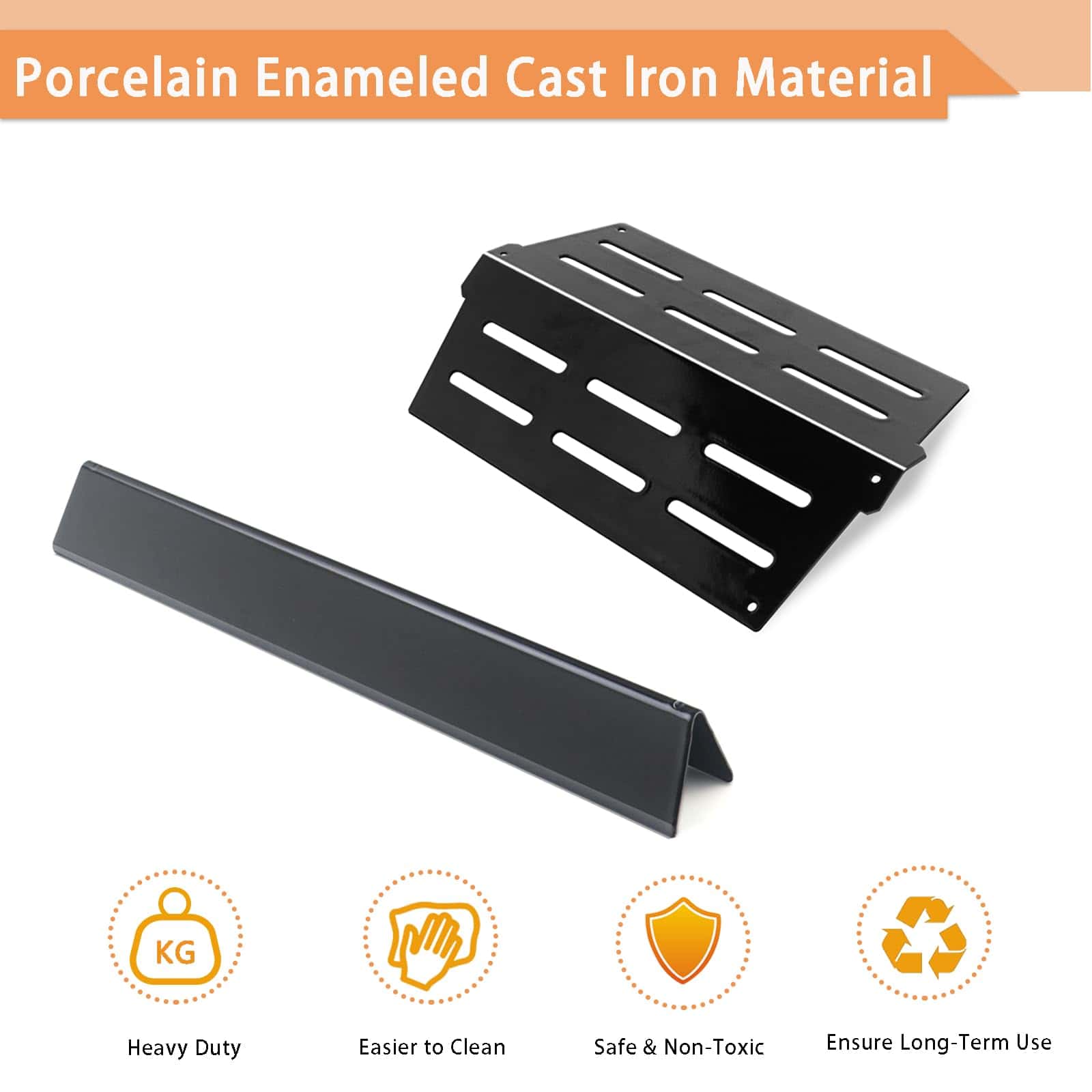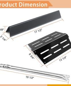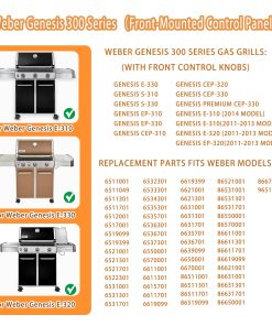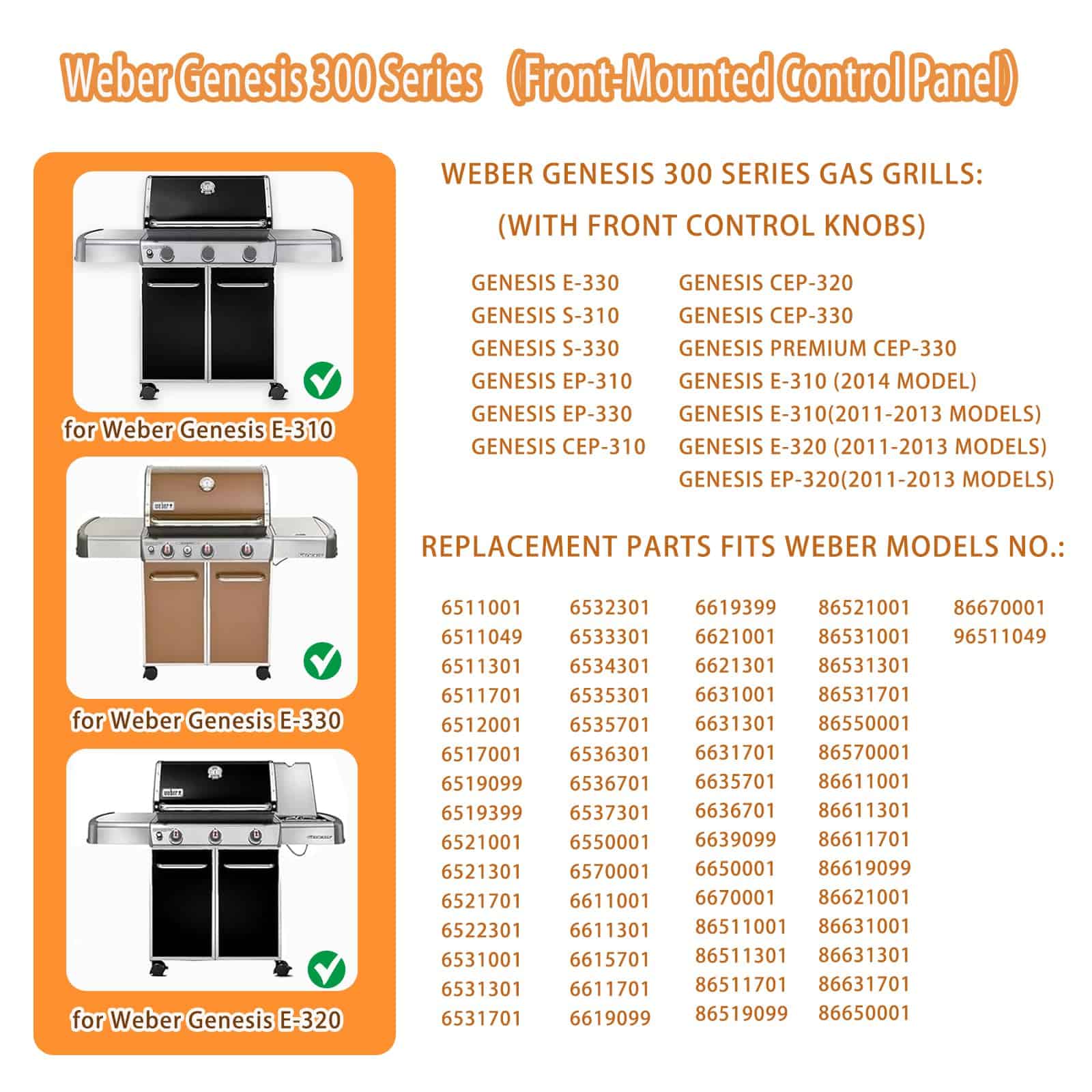 1. Dimentions 5 PC Porcelain Steel Flavorizer Bars 17 1/2″ x 2 2/8″ x 2 3/8″; 2 PC Porcelain Steel Heat Deflectors 13 1/4″ x 8 3/4″; 3 PC Stainless Steel Grill Burner 19-1/2″ long each tube. 2. Grill Burners Fits for Weber Genesis 300 Series (2011-2016), including E-310, S-310, E-320, S-320, E-330, S-330, EP-310, EP-320, EP-330, CEP-310, CEP-320, CEP-330. Original Parts Number – Replaces for Weber 62752, 13111. 3. Grill Flavorizer Bars Fits For Weber Genesis E-310 , Genesis E-320, Genesis E-330, Genesis EP-310, Genesis EP-320, Genesis EP-330 (2011-2016)gas grills, Genesis S-310, Genesis S-320 , Genesis S-330, Genesis S-330. Fits Weber 56514, 6511001, 6511301, 6519009, 6519399, 6522301, 6531001, 6532001, 6532301, 6550001, 6570001, 6631001, 6631301, 6670001 6631301, 6670001 grill flavor bars. Original Parts Number – Replaces for Weber 7620, 7621, 7622, 7629, 65505, 56514, 62784. 4. Grill Heat deflectors Fits for Genesis 310, 320 & 330 Series (2011-2016): E-310, E-320, E-330, S-310, S-330, EP-310, EP-320, EP-330, CEP-310, CEP-320, CEP-330 With Front-Mounted Control. Original Parts Number – Replaces for Weber 7622, 65505, 62756. 5. Superior & Safe Material Well-engineered and built to last. much more substantial and thicker than the others, effectively prevent oxidation corrosion and prolong the service life.