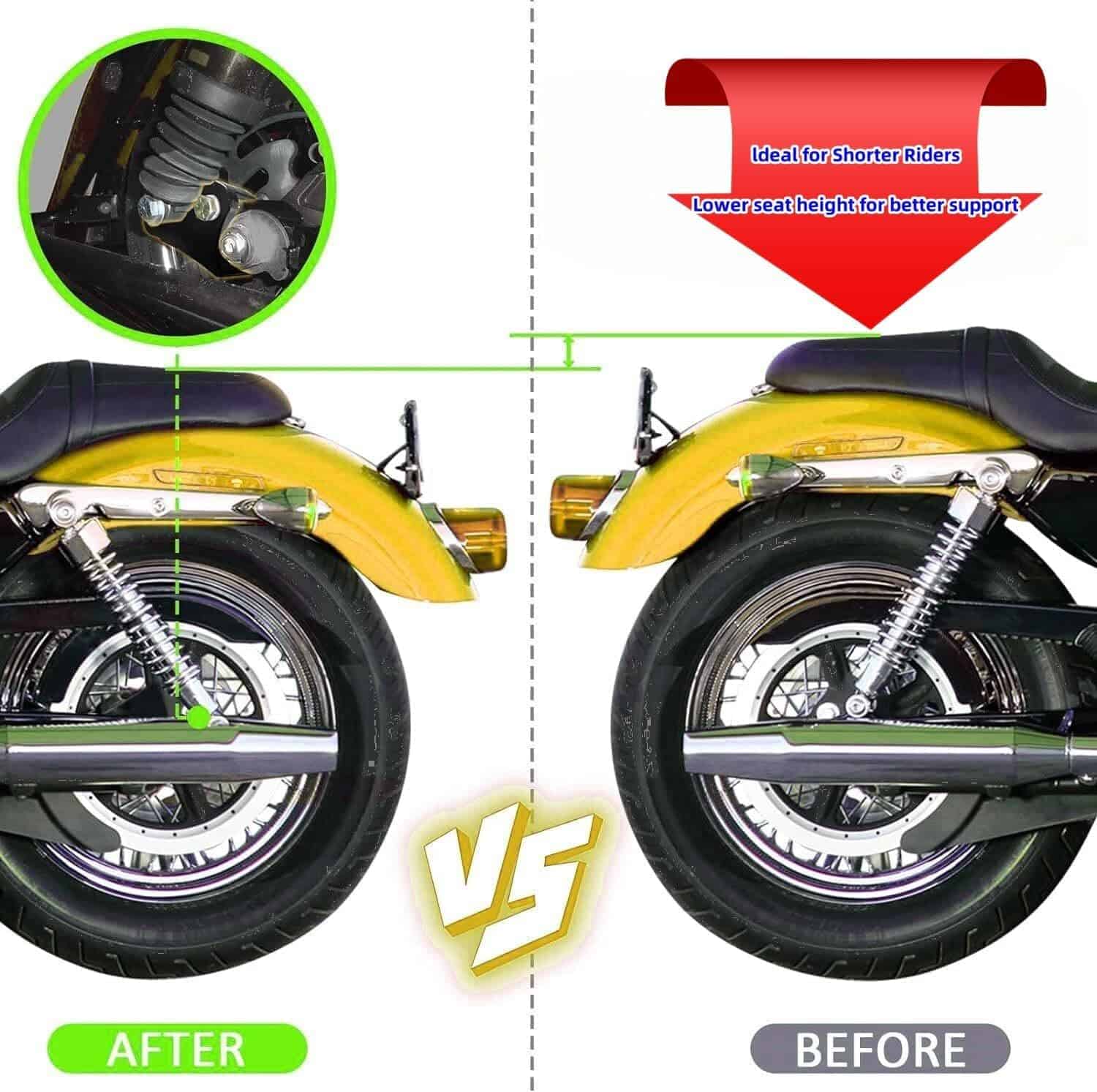 Enlaces de bajada de 2 pulgadas para modelos de Harley Touring 2002-2023. No compatible con suspensión de aire, no apto para amortiguadores Legends Revo-A.