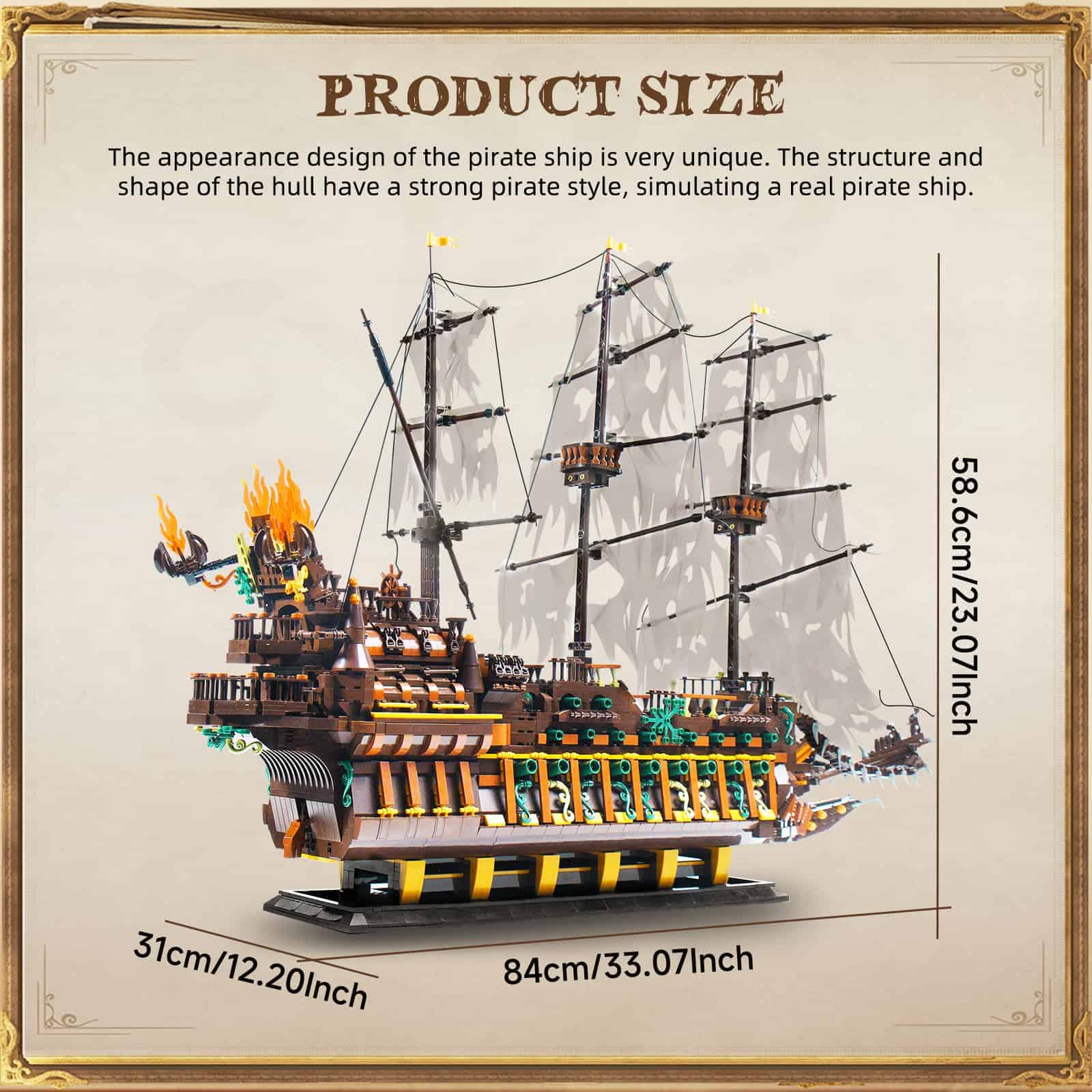 El barco Flying Dutchman es la pieza central de este conjunto, con una cubierta de liberación rápida, timones giratorios, velas y cuerdas realistas. Además, el barco está equipado con artefactos retráctiles y una amplia variedad de bloques ensamblados que garantizan su estabilidad y una apariencia exquisita. Esta maqueta es una excelente opción para decorar tu dormitorio, sala de estudio u oficina.