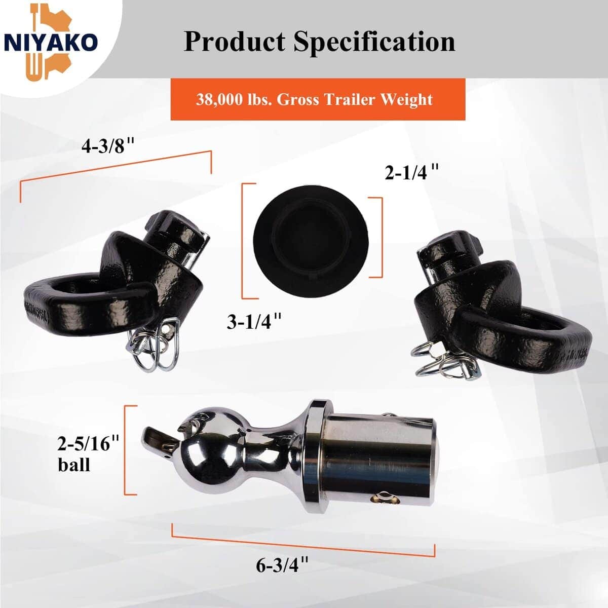 Kit de bola de remolque Gooseneck Niyako, bola de 2-5/16