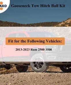 Niyako Gooseneck Tow Hitch Ball Kit es la solución perfecta para remolcar de manera segura y eficiente. Fabricado con acero forjado y mecanizado de alta calidad, este kit de bola de remolque de 2-5/16 pulgadas es lo último en resistencia y durabilidad. Con una capacidad de carga impresionante de 38,000 lbs, puede estar seguro de que podrá remolcar sin problemas una variedad de cargas pesadas. Compatible con Ram 2500 3500 de 2013 a 2023, este kit se adapta perfectamente a camas de 6-1/2 pies y 8 pies. Además, con su diseño inteligente que cubre un enganche receptor estándar de 1-1/4 pulgadas x 1-1/4 pulgadas, este kit le brinda la versatilidad que necesita para remolcar un remolque pequeño o montar un portaequipajes o portabicicletas. ¡No busque más, el kit de bola de remolque gooseneck Niyako es la elección ideal para todas sus necesidades de remolque!