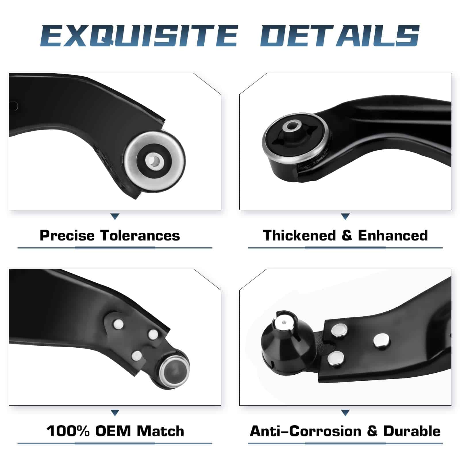 El Kit de Brazo de Control Inferior Delantero con Junta de Bola incluye: (2) Brazos de Control Inferior Delantero con Junta de Bola. Cada brazo de control y junta de bola está diseñado para una aplicación específica, sometido rigurosamente a pruebas de impacto, anticorrosión, desgaste y fatiga por un equipo de ingenieros calificados. Incluyendo la aplicación de tratamientos térmicos específicos para garantizar un rendimiento perfecto, asegurar la seguridad en la conducción del vehículo. Los bujes de goma preinstalados ayudan a reducir eficazmente el ruido y la vibración en la carretera, lo que le permite disfrutar de una conducción suave y controlada durante giros y baches. Garantía de 1 año, si tiene alguna insatisfacción, contáctenos, haremos todo lo posible para su total satisfacción.