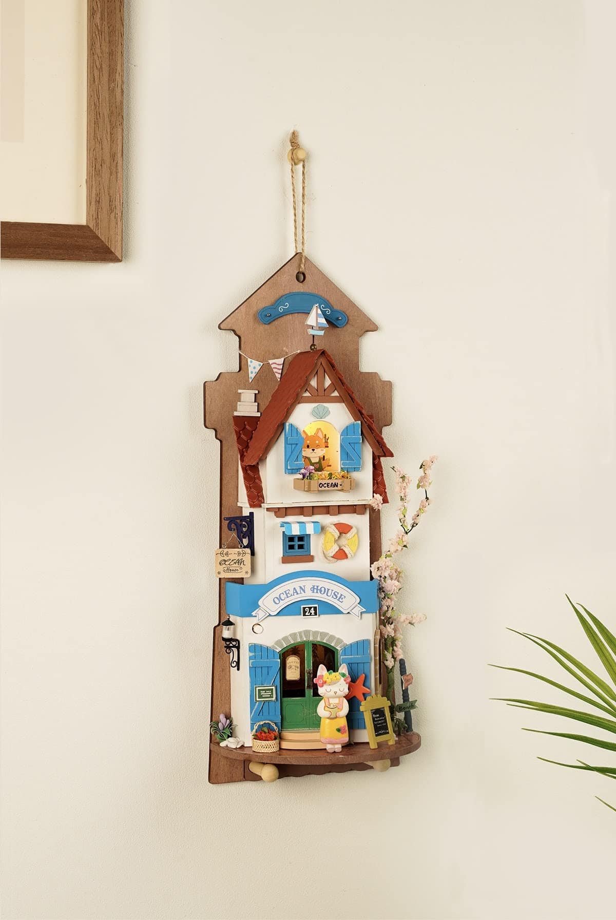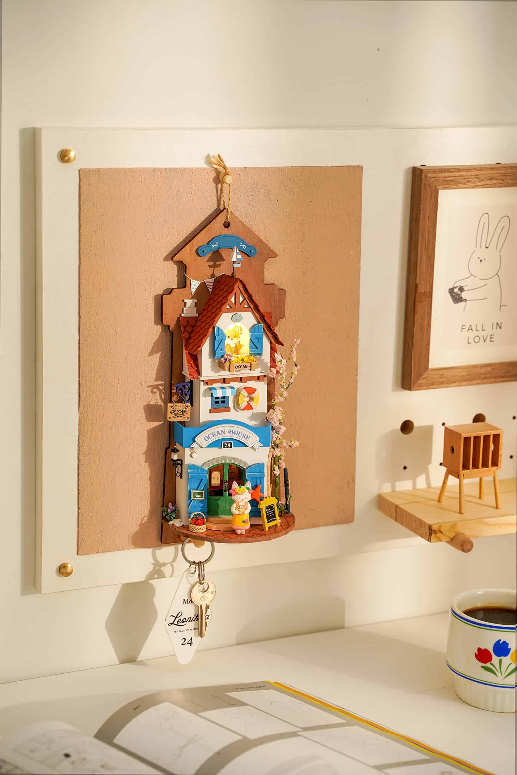 4. PERCHERO DE LLAVES Esta exposición de pared colgante tiene dos ganchos en la parte inferior para colgar tus llaves, para que nunca las pierdas. Este modelo viene con piezas cortadas con láser y diseños impresos para darle a la escena de miniatura un aspecto más realista. El material texturizado con pintura ricamente coloreada le da a la escena detalles realistas. Con una decoración y detalles tan increíbles, esta linda y moderna exhibición de tienda de animales DIY seguramente impresionará. Es una pieza de exhibición elegante con detalles delicados a la vez que es duradera y resistente para durar mucho tiempo.