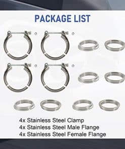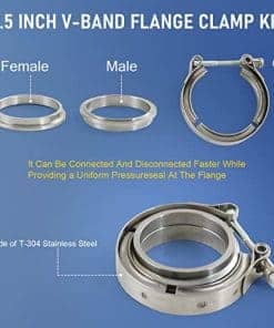 Kit de Brida y Abrazadera V-Band de Acero Inoxidable 2.5″ JDMSPEED es ideal para aquellos que buscan una solución confiable y duradera para sus tubos de escape turbo. Con un diámetro interno de 2.5 pulgadas, este kit incluye 4 abrazaderas V-Band y 8 bridas V-Band (macho/hembra), lo que facilita el montaje y desmontaje de los componentes. Perfecto para corredores y ajustadores, estas abrazaderas permiten acceder fácilmente a los componentes esenciales sin la necesidad de herramientas especiales. Se recomienda encarecidamente la instalación profesional para garantizar un ajuste adecuado y seguro.