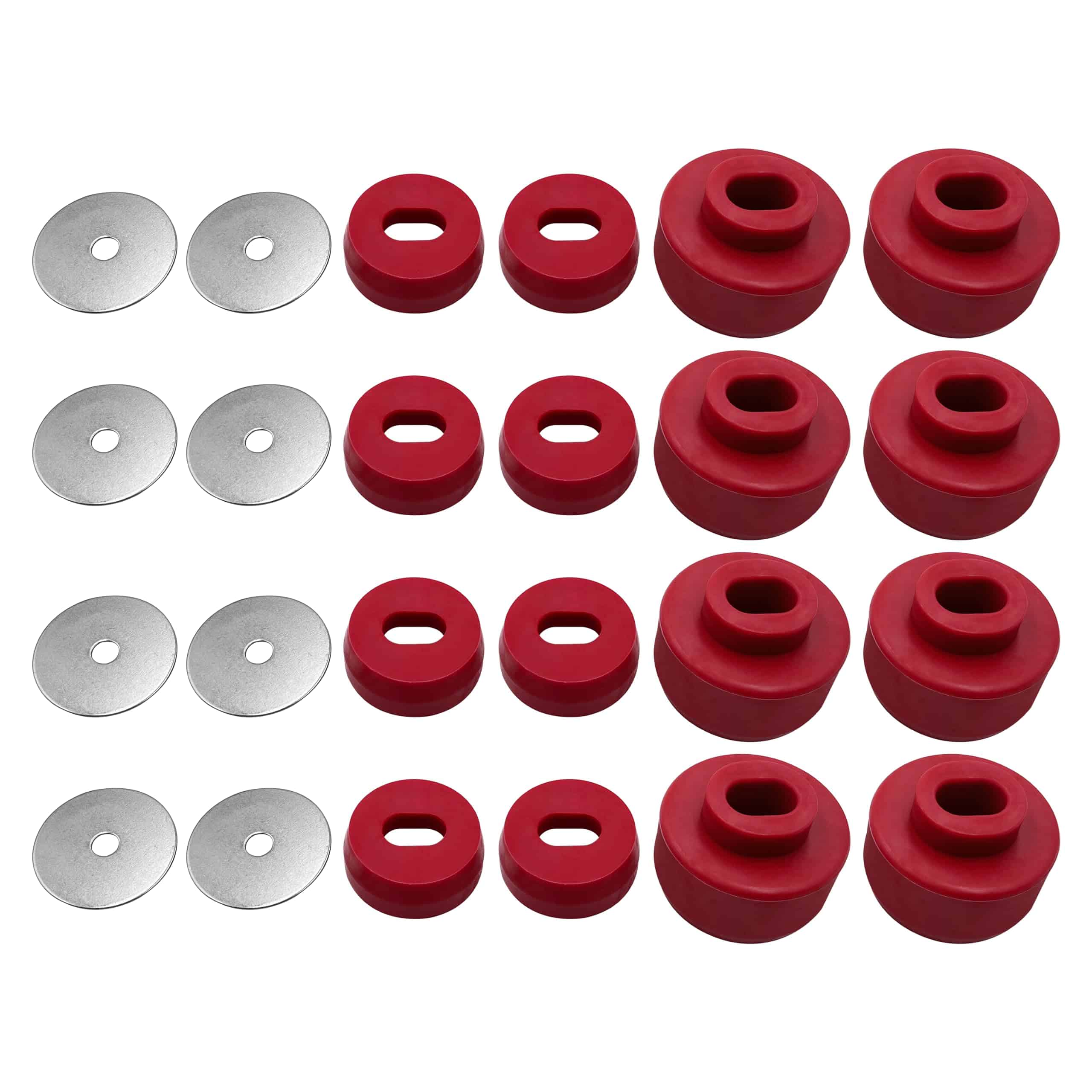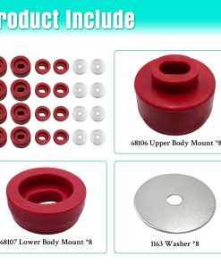 2. Kit incluye: 8 Buje de Montaje de Cabina, 8 Buje de Montaje de Cuerpo, 8 Arandelas Planas.
