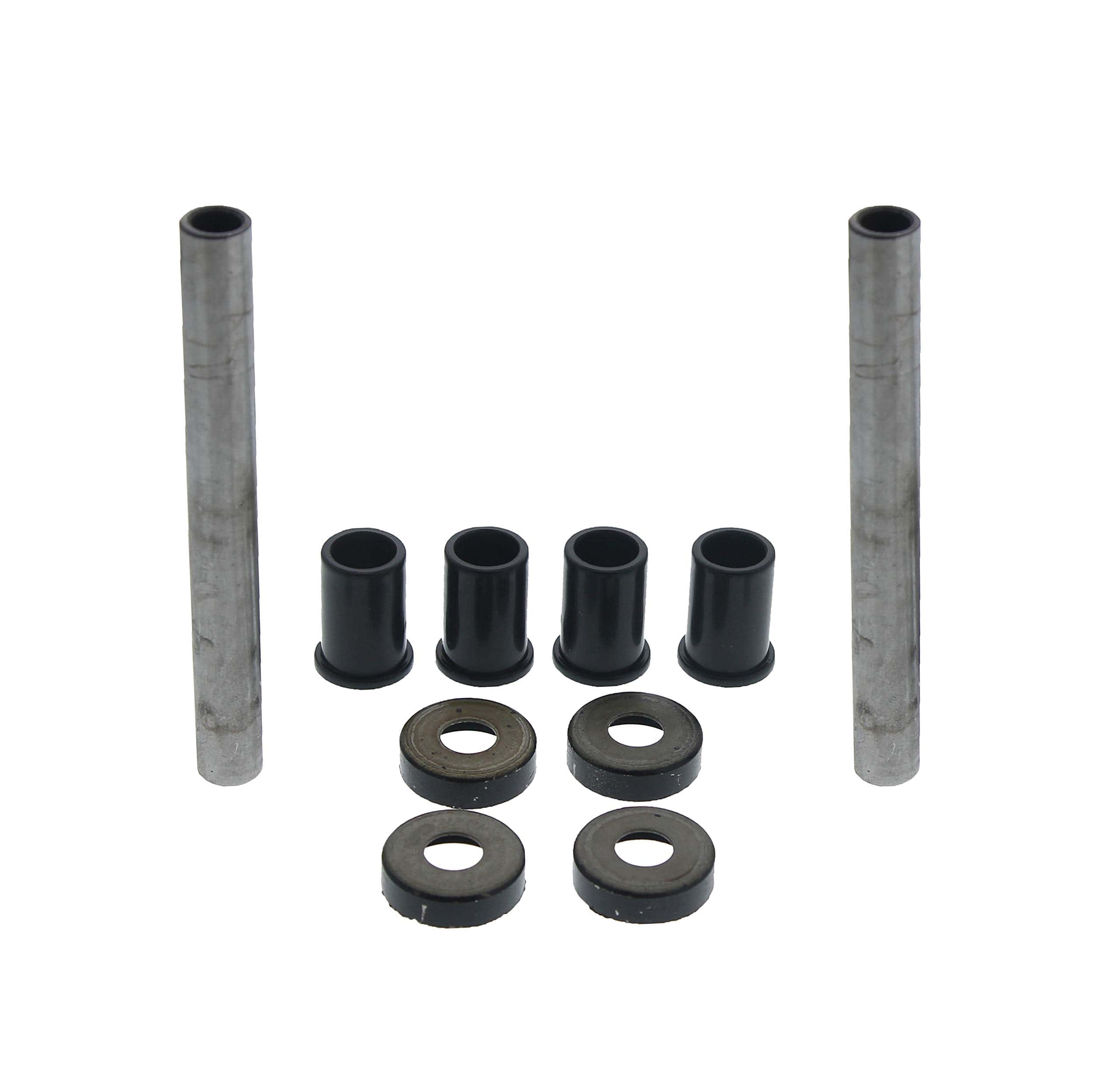 1. Kit de bujes superiores del brazo A delantero – Ambos lados – Bujes de poliéster de alta resistencia: incluye 4 bujes de poliéster, 2 ejes de cojinete, 4 arandelas de sellado.