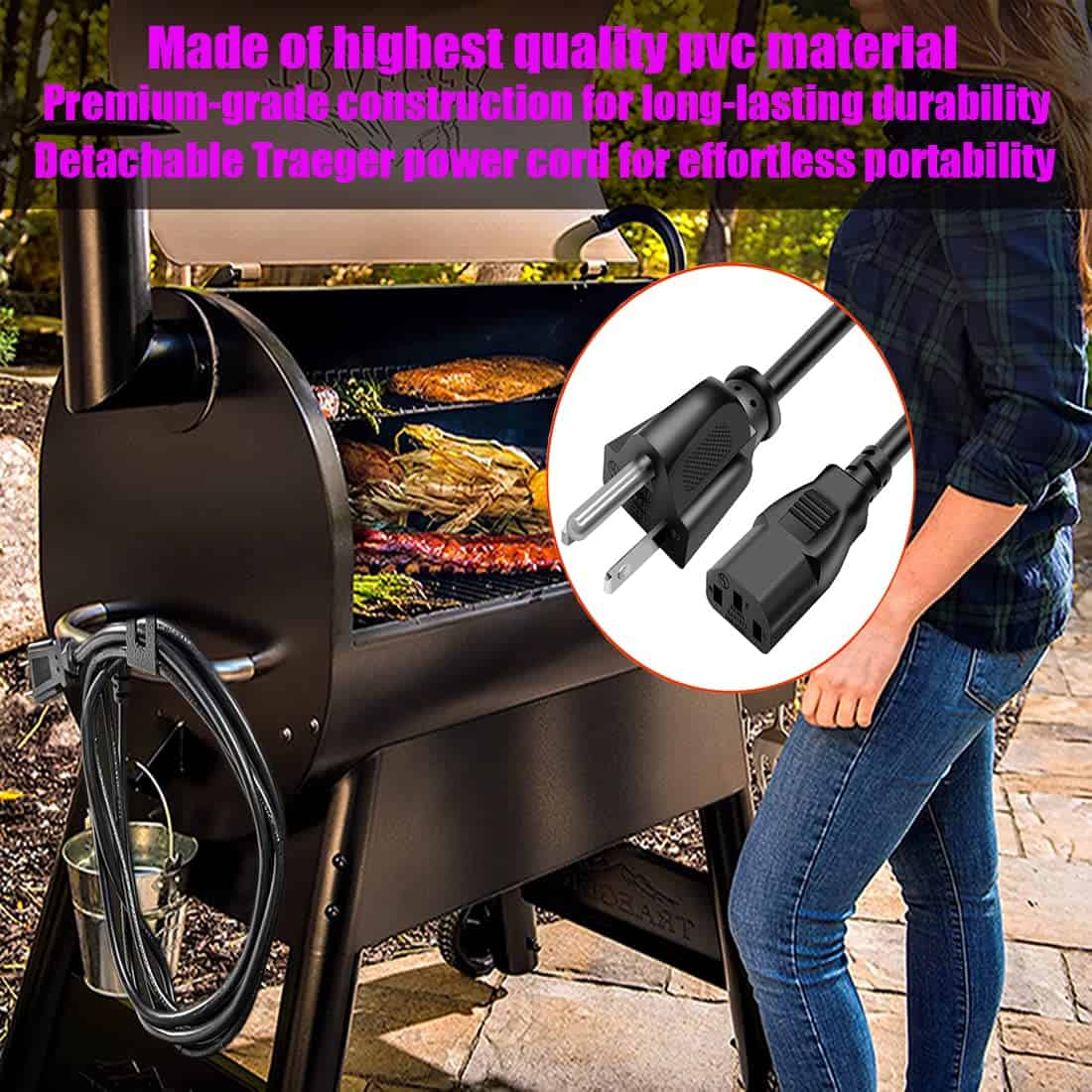 Kit de Cable de Alimentación para Parrilla de Pellets DONSIQIZZ es una pieza de repuesto de alta calidad y compatible con varios modelos de parrillas Traeger. Este kit de cable de alimentación viene en un tamaño de 6 pies de longitud con un diseño estándar de 3 clavijas en EE. UU. para adaptarse perfectamente a su parrilla. Está fabricado con material de PVC duradero que garantiza una larga durabilidad. La instalación es muy sencilla: el conector hembra se conecta directamente al dispositivo mientras que el conector macho se enchufa a una toma de corriente estándar. Además, el cable es desmontable para una portabilidad fácil. Si tiene alguna pregunta o inquietud, no dude en ponerse en contacto con nosotros y le responderemos en un plazo de 24 horas para garantizar su satisfacción.