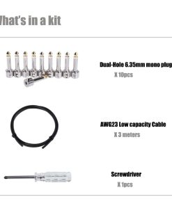 El Kit de cable de conexión sin soldadura IVU con enchufes de doble agujero es la solución definitiva para cableado personalizado de tu pedalera cuando el espacio es limitado. Los kits de cables de conexión IVU cuentan con enchufes sin soldadura de doble agujero que se conectan a los cables en segundos, creando longitudes personalizadas fácilmente. Es tan sencillo como cortar el cable a la longitud deseada, colocar el extremo del cable en el extremo del enchufe y asegurar el tornillo para producir cables perfectos y con un sonido genial. Los enchufes incluidos se pueden configurar para conexiones rectas o en ángulo recto, y ocupan menos espacio que los enchufes de audio estándar. El diseño del enchufe Mini Dual-Hole utiliza menos espacio entre pedales y se puede configurar para conexiones rectas o en ángulo recto. Los enchufes sin soldadura se conectan al cable en segundos, creando longitudes personalizadas fácilmente. La tapa precisamente mecanizada del enchufe en L dobla suavemente el cable en una posición para proporcionar la resistencia y durabilidad ideales. El diseño del cable de baja capacitancia transmite todos los detalles armónicos con transparencia. ¿Qué hay en el kit de cable de conexión sin soldadura? Enchufe sin soldadura X 10pcs Cable sin soldadura X 10ft Destornillador X 1pcs