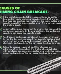 Fitment Engine Timing Chain with Water Pump Set Fit para 1995-2004 para Toyota para Tacoma 2.4L. Kit de reemplazo incluido 1x Cadena de tiempo (102 eslabones), 1x Piñón (36 dientes), 1x Piñón del cigüeñal (18 dientes), 1x Tensor de cadena, 1x Riel de guía del tensor, 1x Riel de guía fijo, 1x Bomba de agua con junta. El kit de cadena de distribución del motor de alta calidad está hecho de materiales de alta calidad para garantizar una durabilidad a largo plazo y una mayor rigidez. Se caracterizan por una alta potenc… (truncated)…