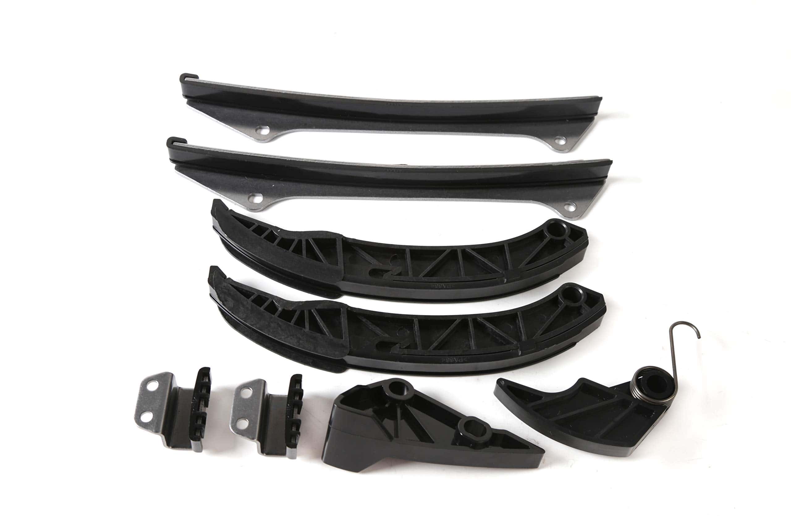 Kit de cadena de tiempo de tipo link-belt original de calidad OE para una durabilidad excepcional y resistencia. Tecnologías de fabricación avanzadas para producir piñones de engranaje de árbol de levas y cigüeñal de ajuste preciso. Tensores de calidad premium para asegurar la correcta tensión y funcionamiento. Ideal para remplazo de stock y aplicaciones de rendimiento sencillo. Montaje directo. Reemplazar el kit de cadena de tiempo es muy sencillo. Material: Acero. Tamaño: 13in x 9.65in x 2.56in (Aprox). Paquete incluye: 2 Cadenas de tiempo (Primaria Superior 178 eslabones) 1 Cadena inferior (72 eslabones) 2 Piñones de árbol de levas de escape (50 dientes) – (Los piñones de árbol de levas de admisión VVT no están incluidos) 1 Piñón de cigüeñal (Lado derecho / Doble 25T/25T) 1 Engranaje de bomba de aceite (29 dientes) 1 Piñón de cigüeñal (Lado izquierdo – 25T) 2 Rieles de guía superiores (Rieles tensores) 2 Rieles de guía superiores (Rieles fijos) 2 Rieles de guía superiores (Pequeños rieles fijos) 1 Riel de guía inferior (Cadena inferior) 1 Guía 2 Tensores de cadena de tiempo (Primarios). Aplicación de vehículos: Hyundai Azera 2007 – 2011 3.3L V6 Dohc G6Db Hyundai Santa Fe 2007 – 2009 3.3L V6 Dohc G6Db Hyundai Sonata 2006 – 2010 3.3L V6 Dohc G6Db Kia Sorento 2008 – 2009 3.3L V6 Dohc G6Db Hyundai Santa Fe 2010 – 2012 3.5L V6 Dohc G6Dc Kia Sedona 2011 – 2012 3.5L V6 Dohc G6Cd / G6Dc Kia Sorento 2011 – 2013 3.5L V6 Dohc G6Cd / G6Dc Hyundai Azera 2006 – 2011 3.8L V6 Dohc G6Da Hyundai Entourage 2007 – 2008 3.8L V6 Dohc G6Da Hyundai Genesis 2009 – 2012 3.8L V6 Dohc G6Da Hyundai Veracruz 2007 – 2012 3.8L V6 Dohc G6Da Kia Amanti 2007 – 2009 3.8L V6 Dohc G6Da Kia Borrego 2009 – 2009 3.8L V6 Dohc G6Da Kia Sedona 2006 – 2010 3.8L V6 Dohc G6Da Kia Sorento 2007 – 2009 3.8L V6 Dohc G6Da