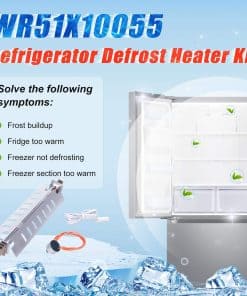 El Kit de Calentador de Deshielo M Motico WR51X10055 es perfecto para garantizar que los alimentos se mantengan frescos en su refrigerador. Este juego incluye 2 calentadores de deshielo WR51X10055, 2 sensores de temperatura WR55X10025 y 2 termostatos de deshielo WR50X10068. Estas piezas de repuesto de alta calidad son compatibles con refrigeradores GE y Kenmore, y están diseñadas para durar en el tiempo. El calentador de deshielo WR51X10055 se encarga de derretir el hielo y la escarcha alrededor de la bobina para mejorar la conservación de los alimentos, mientras que el sensor de temperatura WR55X10025 envía la lectura de temperatura actual a la placa de control. Por último, el termostato de deshielo WR50X10068 cortará la energía cuando la temperatura alcance un cierto nivel. Confíe en la calidad de estos repuestos y disfrute de alimentos frescos por más tiempo.