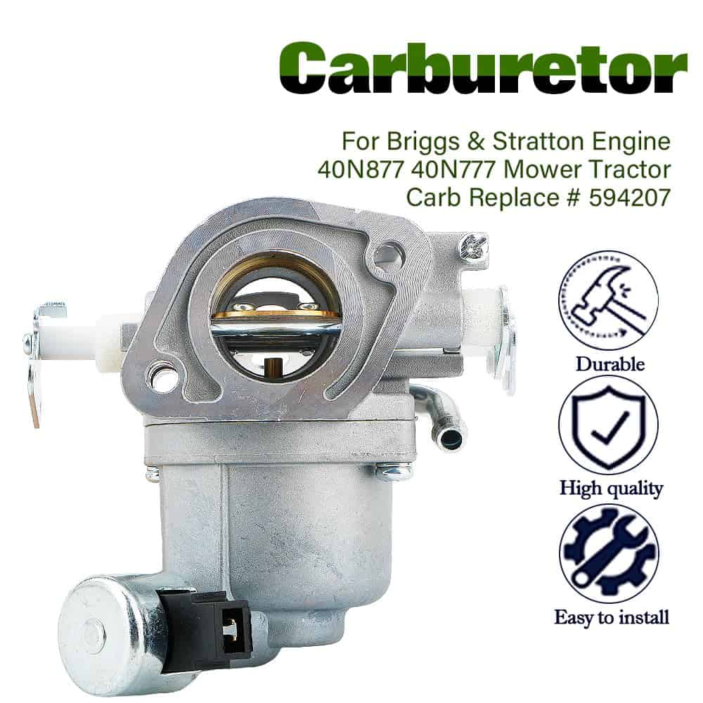 Kit de carburador MOPASEN 597126 con juntas Compatible con Motor 40N877 40N777 Cortacésped Tractor Carb Sustitución # 594207. Compatible con Briggs and Stratton Engine 40N877 40N777 Intek Engine Mower Carburetor. Ajuste para Briggs and Stratton 597126 595216. Por favor revise todas las imágenes y compare con sus piezas usadas para asegurarse de que encaje, o puede confirmar el tamaño con nosotros. Fácil de instalar, es mejor que lo instale un profesional (NO se incluyen instrucciones). Paquete incluido: carburador con piezas como en la imagen.